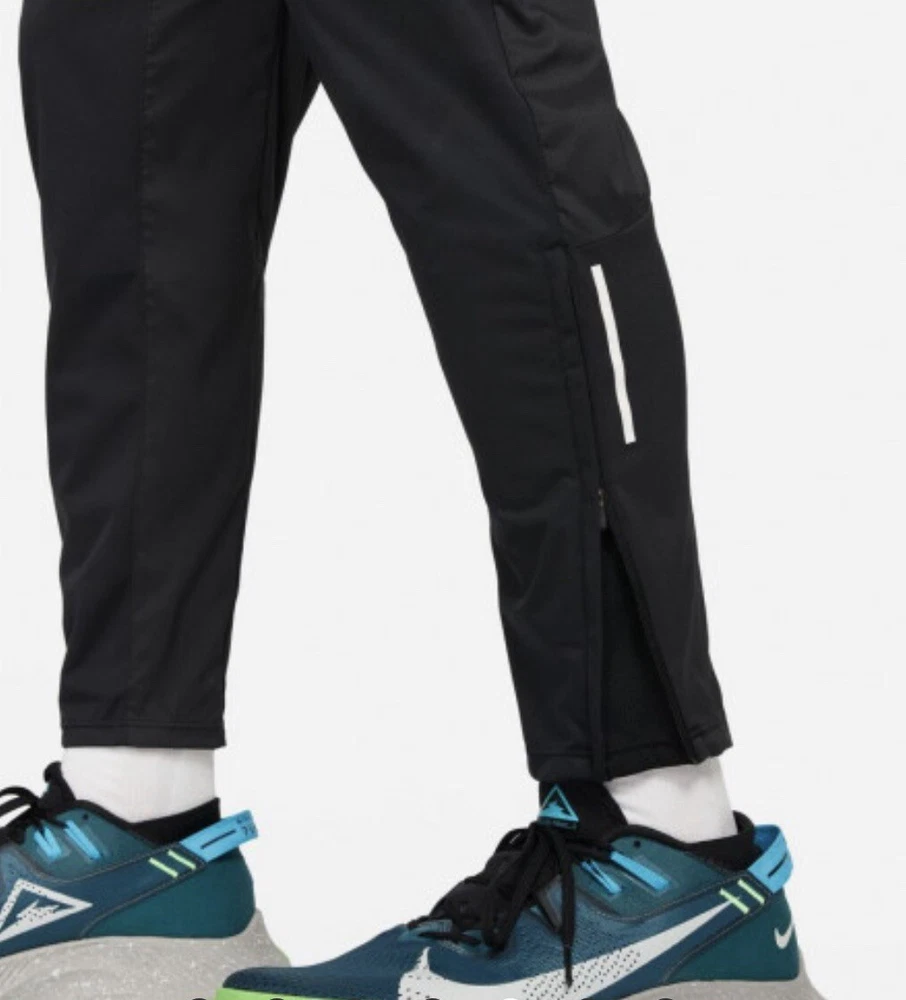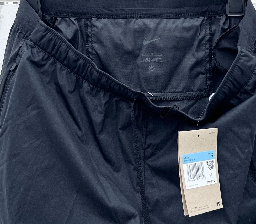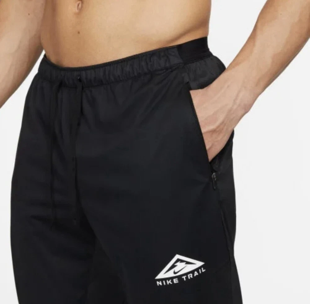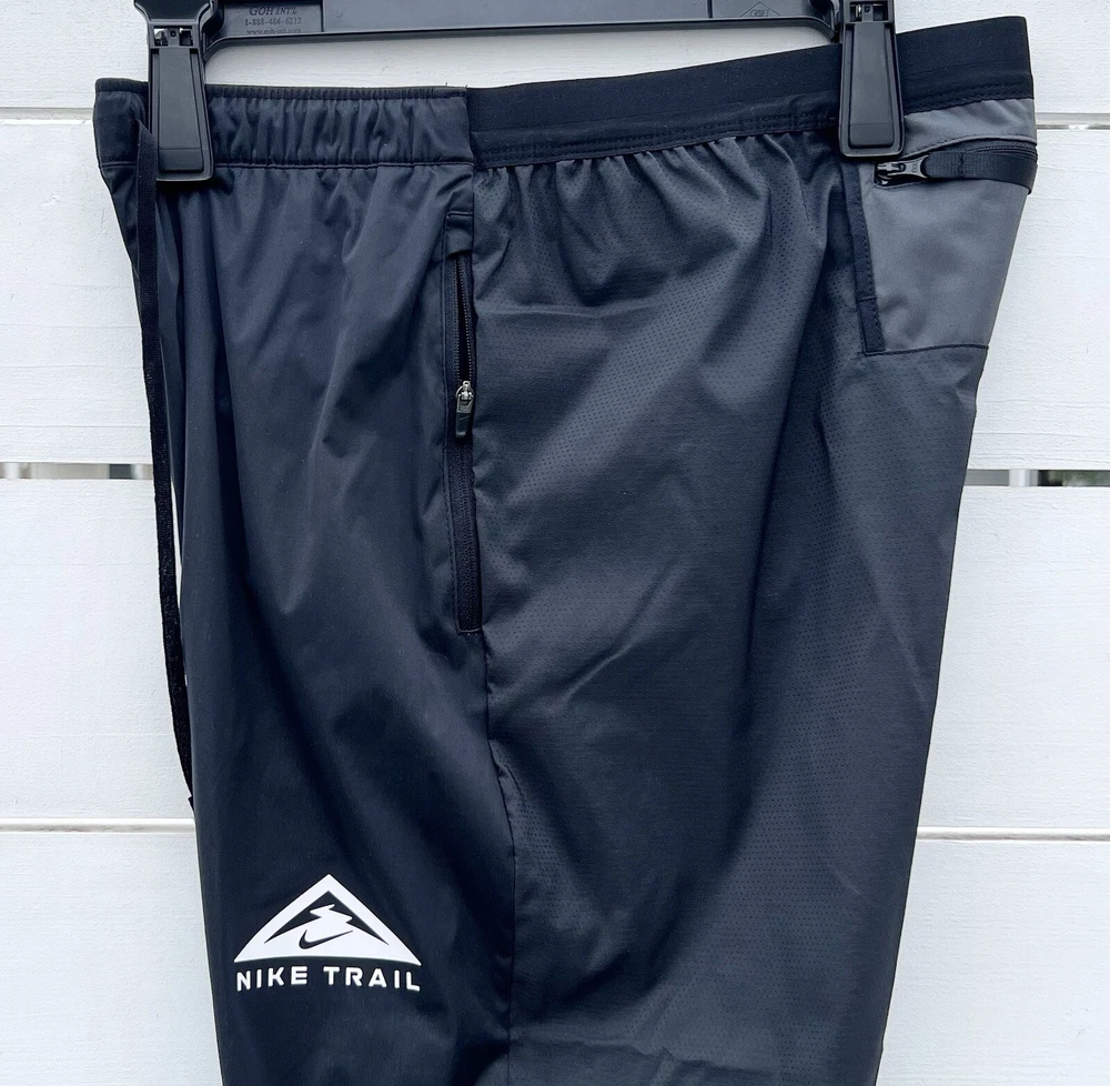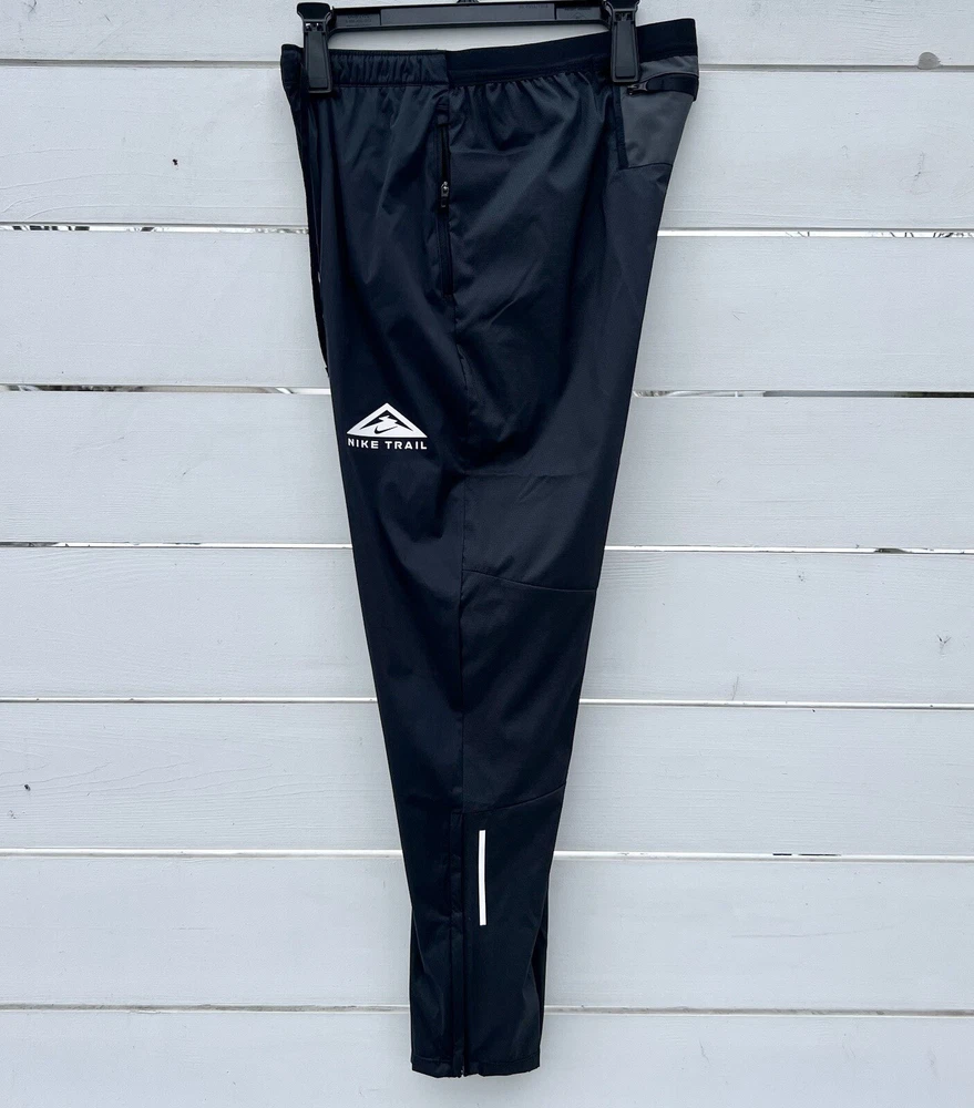 Nike Trail Dri-FIT Phenom Elite Men's Track Pants Retail Price: $105.00 Men’s Size Medium • Composition:100% polyester. Panels: 93% polyester/7% elastane. • Regular fit • Nike Dri-FIT Technology moves sweat away from your skin for quicker evaporation, helping you stay dry and comfortable. • Windproof and breathable fabric in the front • At the back, water-repellent and stretch-woven fabric helps you move in all directions without restriction. • 2 zip side pockets keep things like your protein bars close. • An internal drop-in pocket at the waistband can hold a card or key • At the back, a zip pocket can hold most phones. • Zips at the ankles help you take the trousers on and off. Let dusty trails and rocky terrain be your guide. With the Nike Trail Dri-FIT Phenom EliteTrack Pants, you're prepared for the unexpected with a smooth wind- and water-repellent feel. They also feature multiple pockets so you're never without a trail snack or your phone. This product is made from at least 75% recycled
