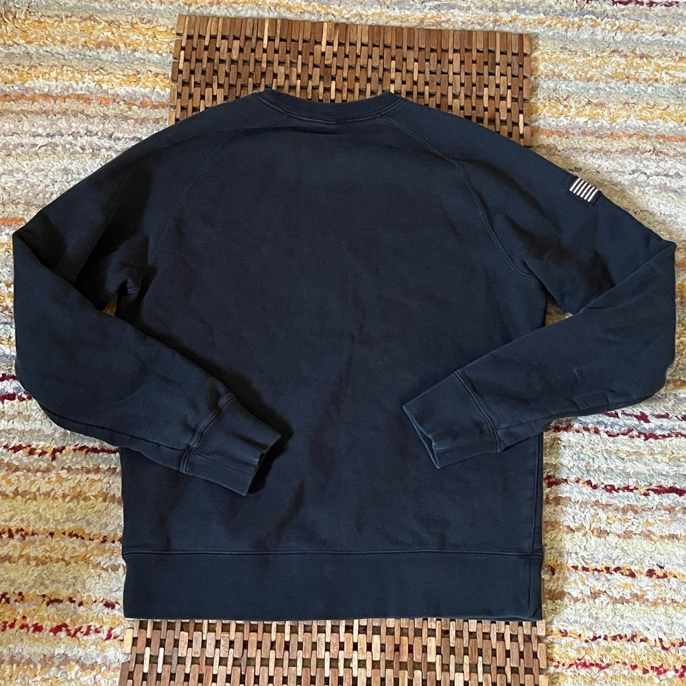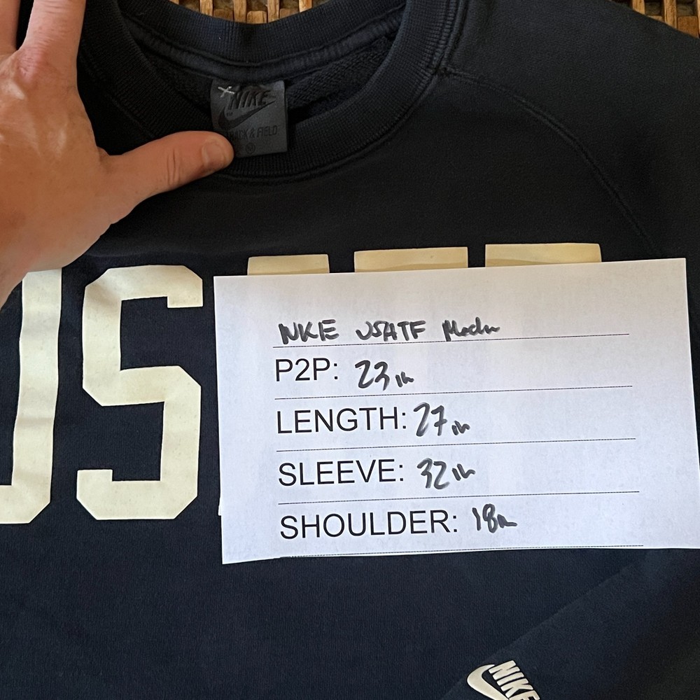 The Nike USTAF Track & Field USA Patch Crew Neck Sweater Sweatshirt in black, size medium, is a stylish and comfortable pullover sweatshirt perfect for the winter, fall, and spring seasons. Made from cotton fleece fabric, this crew neck sweatshirt features a solid pattern with a logo accent, representing the USA Track & Field team. Machine washable and with a regular fit, this Nike Sportswear sweatshirt is a great addition to any man's activewear collection.