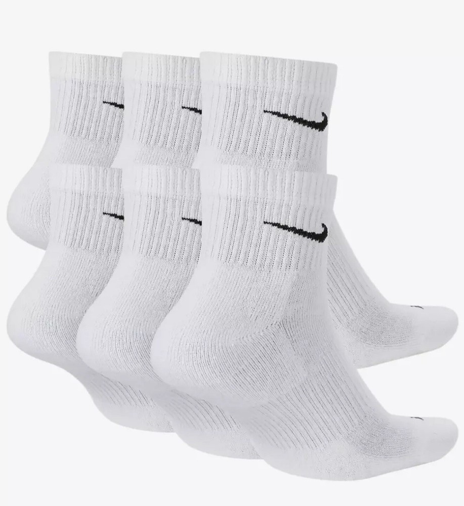 Number in Pack: 6 Pairs Personalize: No Sock Length: Mid Calf Performance/Activity: Baseball, Basketball, Bodybuilding, CrossFit, Cross Training, Cycling, Dance, Football, Golf, Gym & Training, Hiking, Hockey, Hunting, Lacrosse, Pilates, Racing, Riding, Rugby, Running & Jogging, Skateboarding, Skiing, Soccer, Squash, Tennis, Track & Field, Volleyball, Walking, Weightlifting, Wrestling, Yoga Handmade: No Material: Cotton Country/Region of Manufacture: Honduras Style: Ankle Socks gtin13: 888407233876 Occasion: Everyday Type: Socks Size: L Department: Women Theme: Sports Garment Care: Machine Washable Color: White UPC: 888407233876 Season: All Seasons, Fall, Spring, Summer, Winter Features: Cushioned Opacity: Opaque Toe Style: Full Toe Pattern: Solid Brand: Nike