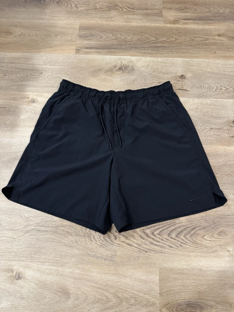 Nike Unlimited Men's Dri-FIT 7" Unlined Shorts in Dark Blue are designed for activewear. The shorts feature a drawstring closure and are made from a blended fabric that is machine washable. With a regular fit and 7" inseam, these athletic shorts are part of the Nike Unlimited product line, perfect for sports and workouts.