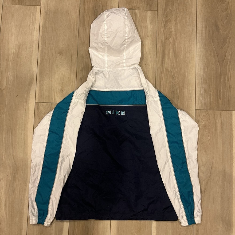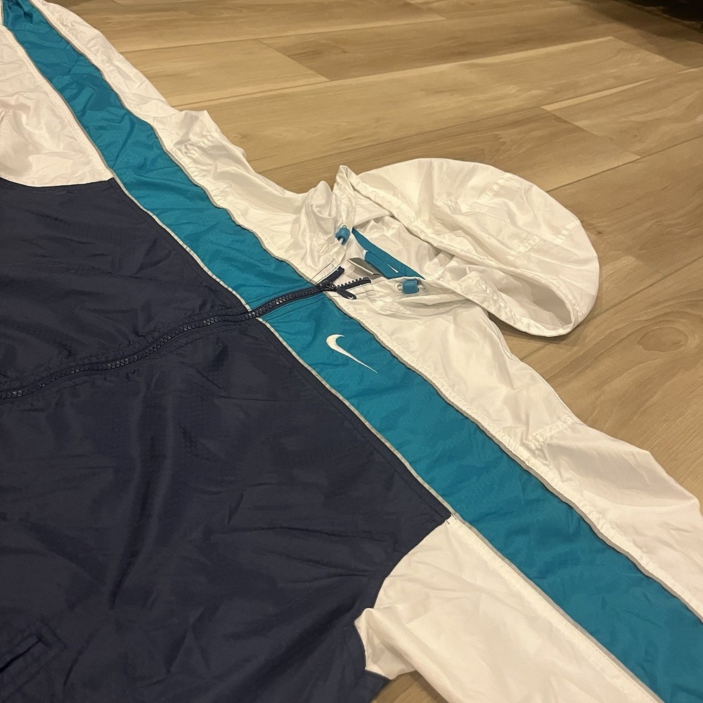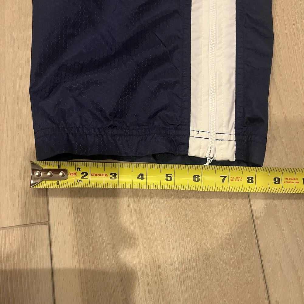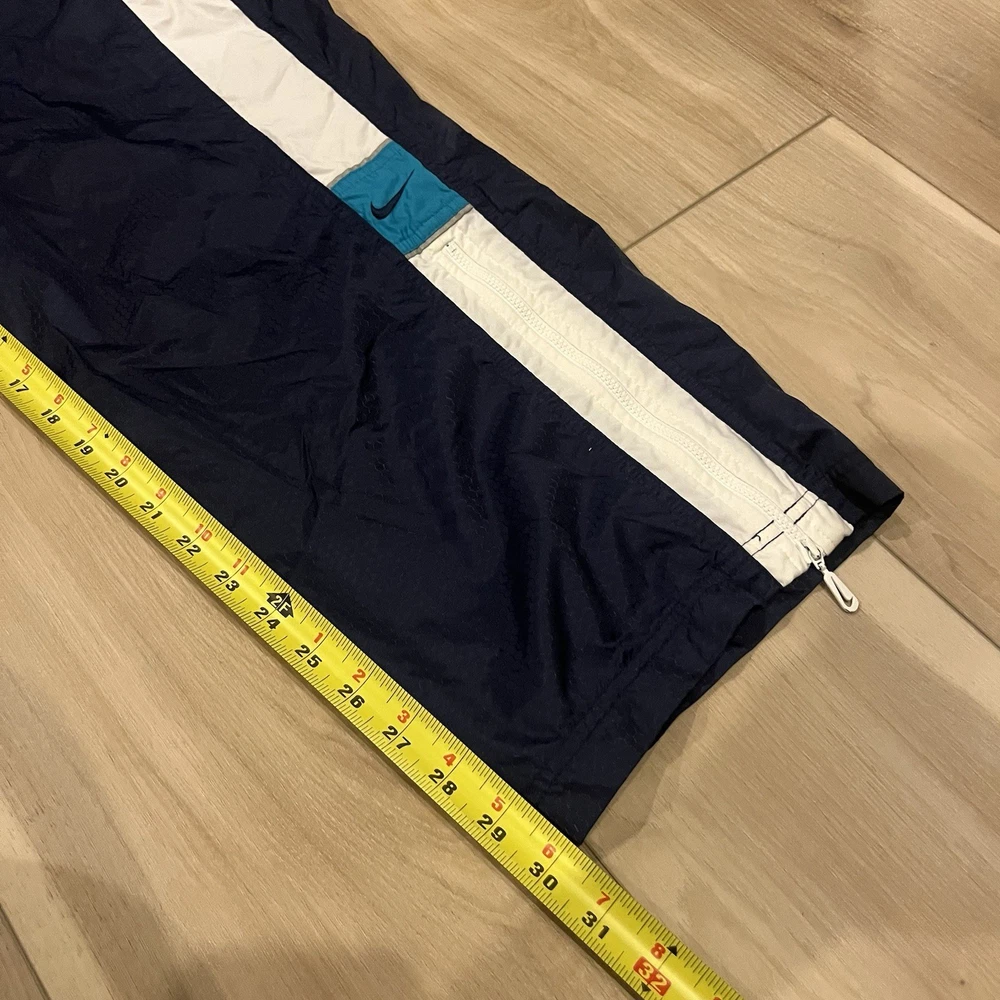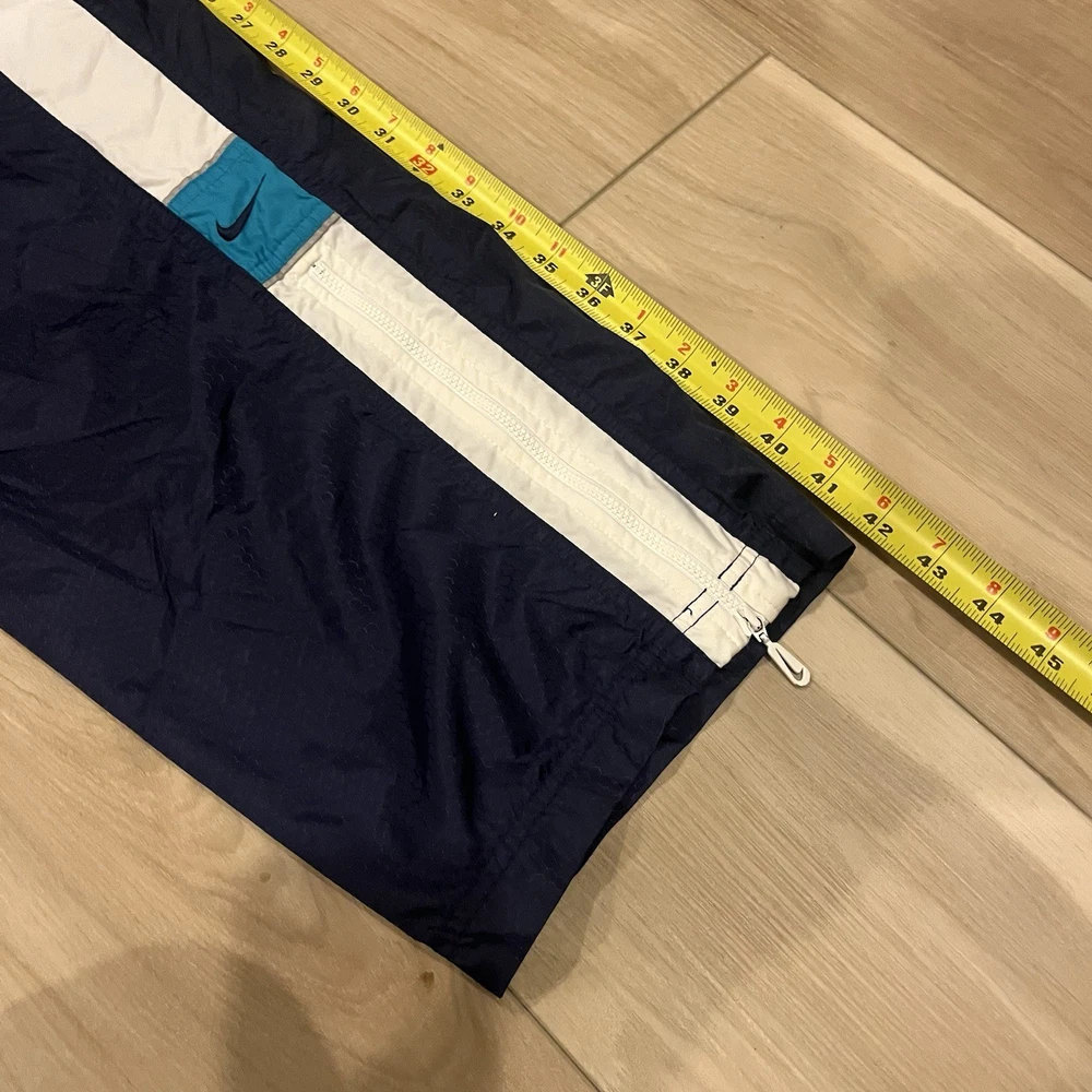 The Nike Vintage 2000s Retro White and Blue Tracksuit Set is a stylish and comfortable 2-piece set perfect for both men and women in size Large. This set features a geometric pattern with a collared neckline and long sleeves, making it ideal for activewear occasions. Made of lightweight polyester material, this tracksuit set includes a track jacket with a zip closure, embroidered Nike logo accents, and pockets for convenience. The retro white and blue color scheme adds a touch of 80s style to this classic Nike set, suitable for various seasons and activities like walking, basketball, and running & jogging.