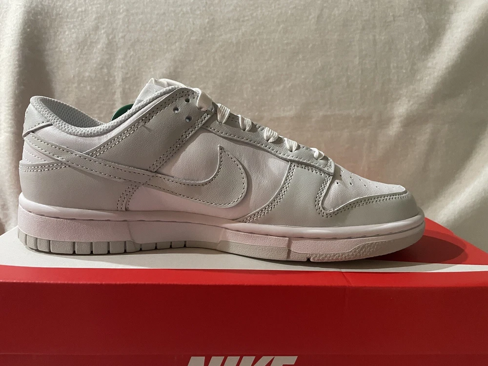 Elevate your casual lifestyle with these Nike Wmns Dunk Low Photon sneakers. The shoes are designed with a faux leather upper material and a medium (b, M) shoe width. They come in a stylish white color and feature a 100% authentic guarantee. These athletic sneakers are perfect for women who enjoy a comfortable yet fashionable shoe. They are available in US shoe sizes 8.5, 5-12, and 7-14 for domestic customers. The shoes are made in Indonesia and belong to the Wmns Dunk Low product line. Get your hands on these sneakers and step out in style!
