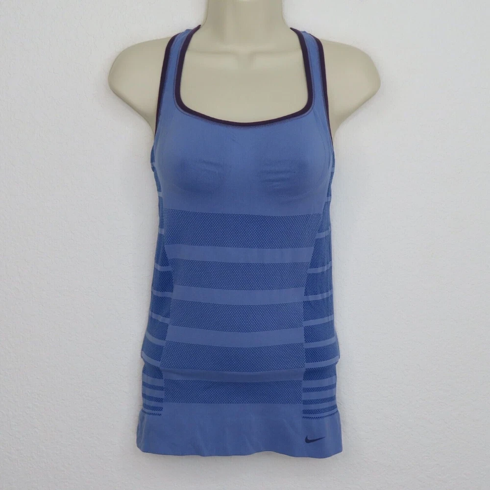 Nike Women's medium, M Dri Fit racerback tank top Built in bra, no padding **see photos for fabric content and washing instructions Pit to pit: 12.25" Length: 23" **measurements are approximate, taken with item laying flat Condition: smoke free home, used Please review all photos closely as these will be the best description of the item. Thank you for shopping!