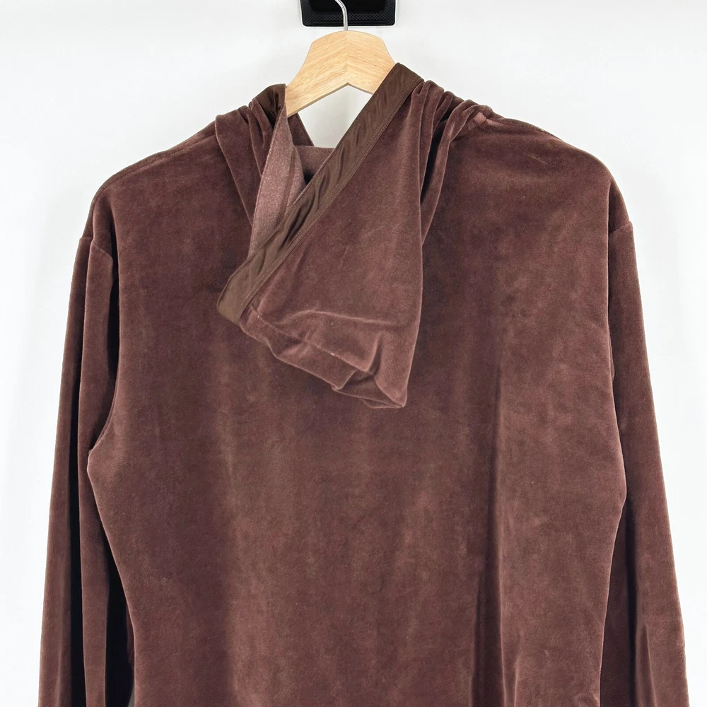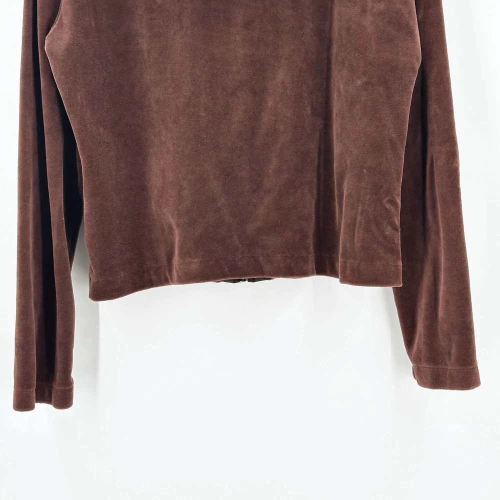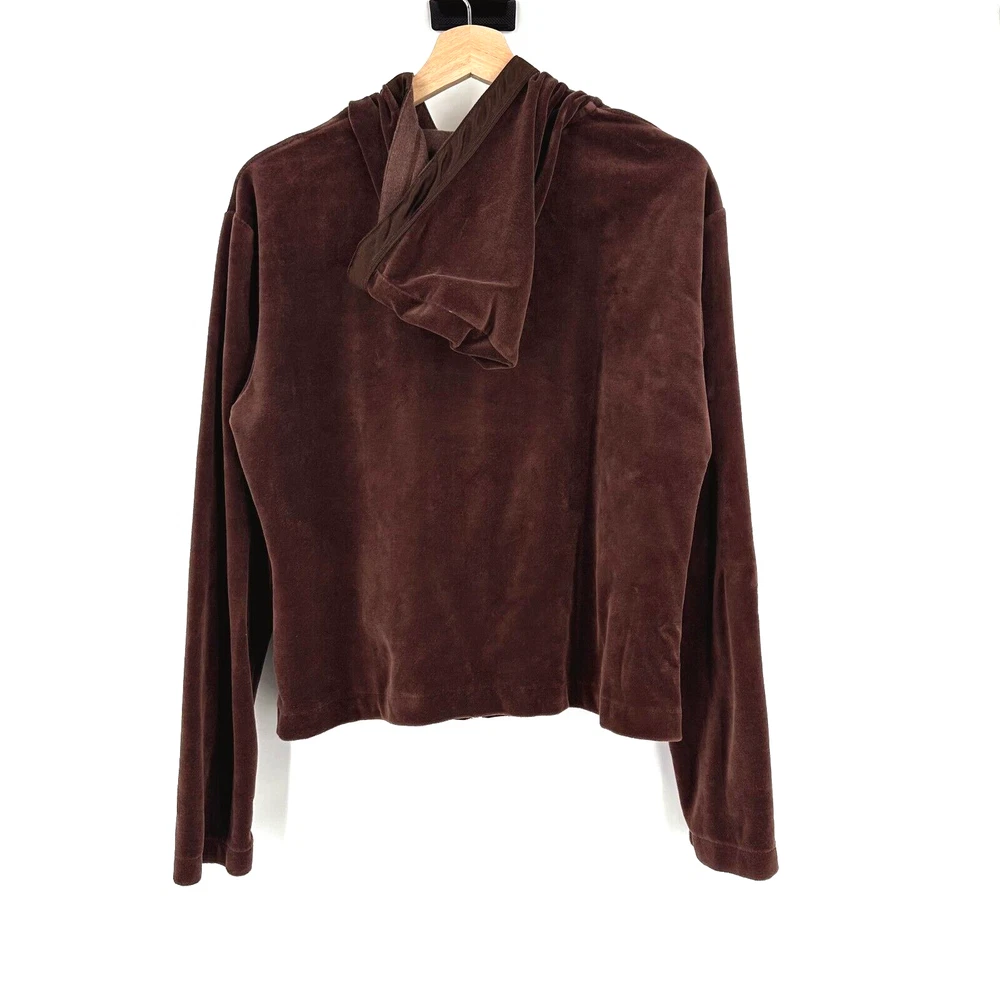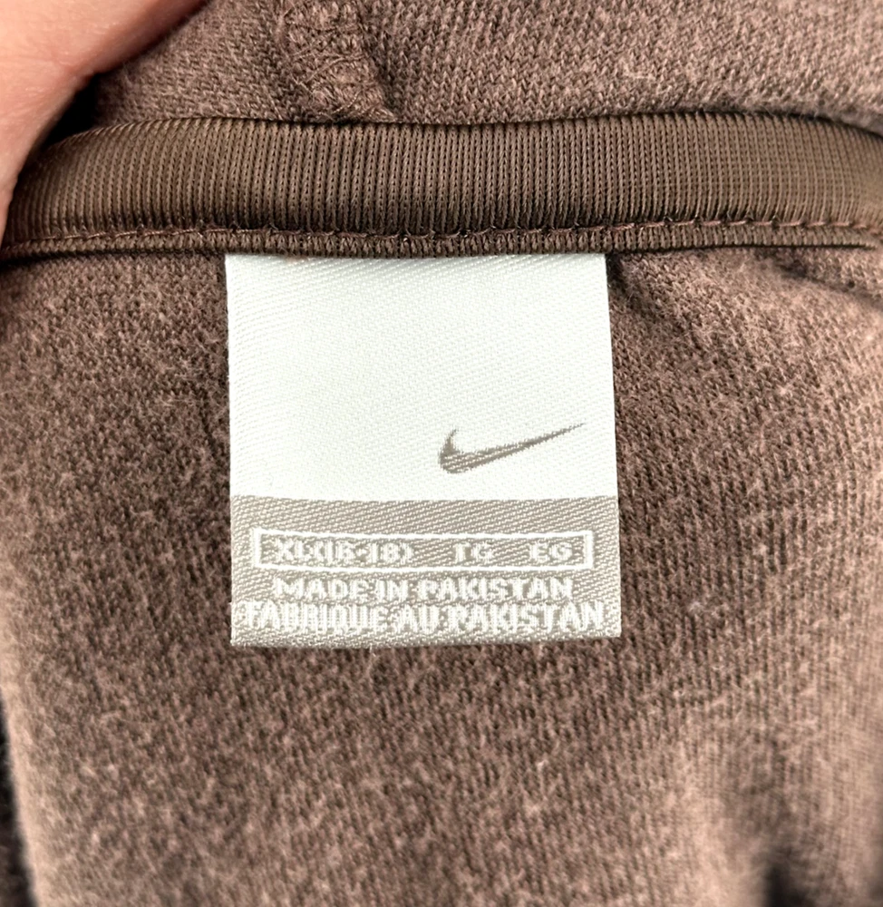 Nike Women Y2K Velour Zip Up Hoodie Size XL Swoosh Brown Retro Streetwear Sporty Color: Brown Specific: full zip, hooded, cozy and soft, Y2k, retro Material: Cotton/Polyester Condition: In Great Preowned Condition With No Flaws Measurments Laying Flat In Inches Pit to Pit 22 inches Length From Shoulder To Hemline 22 inches Ships next business day 1671-10