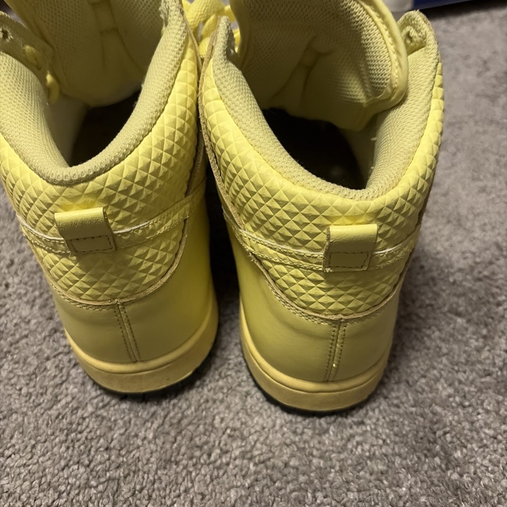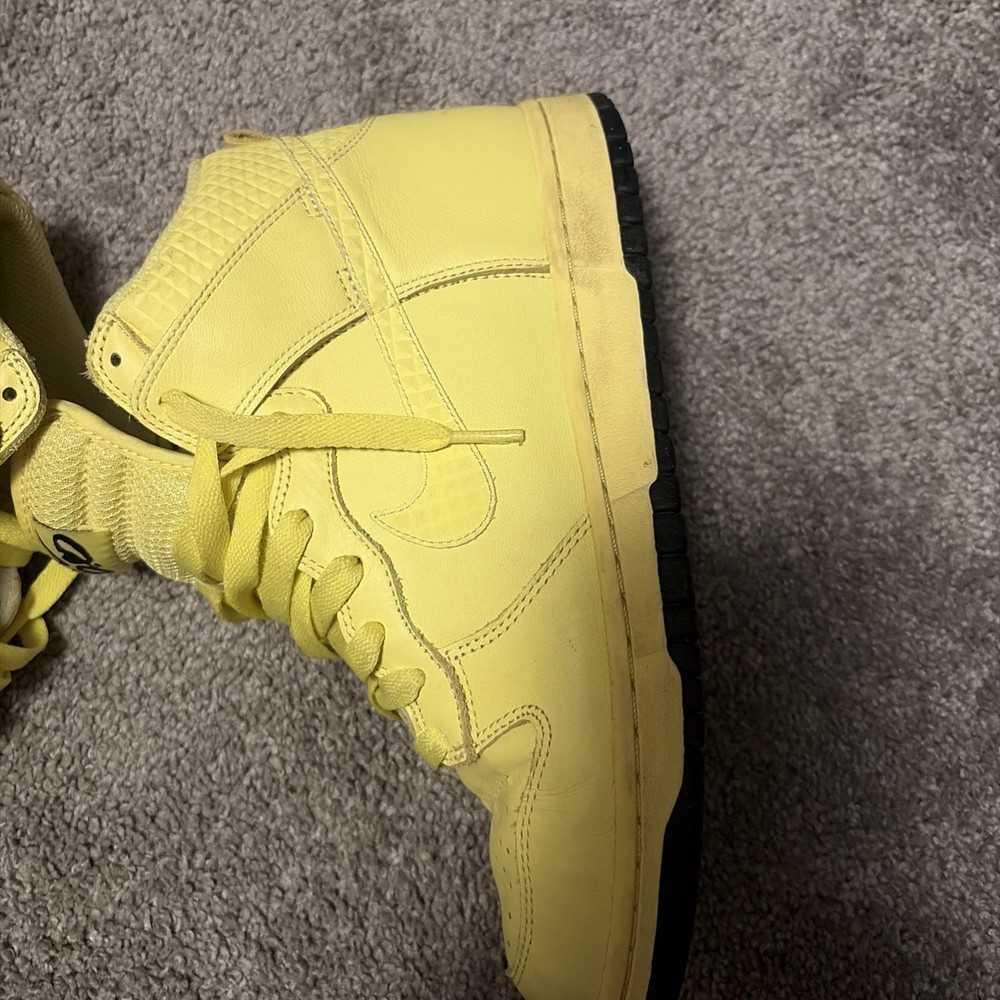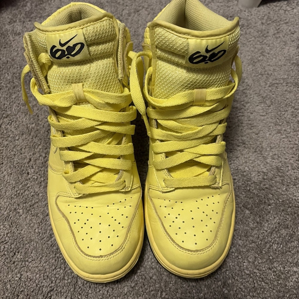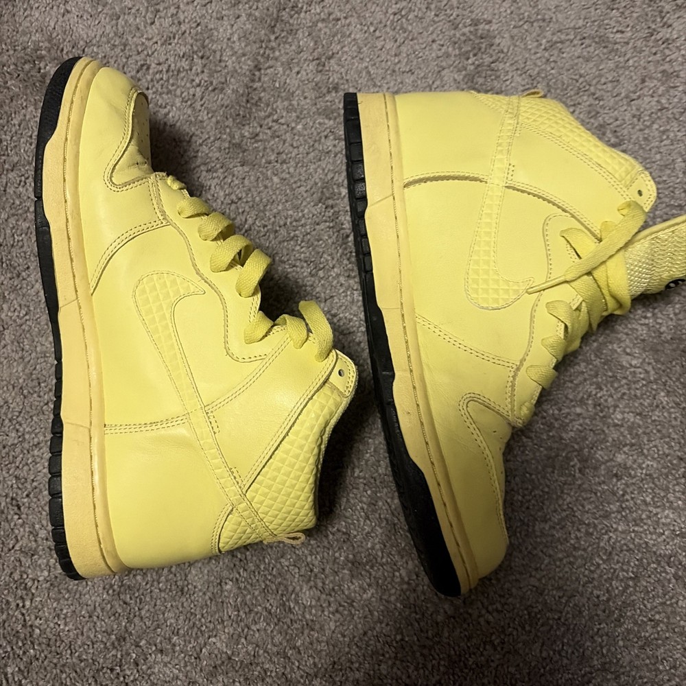 Signed: No Closure: Lace Up US Shoe Size: 9.5 Outsole Material: Rubber Vintage: No Accents: Logo Style: Sneaker Model: Nike Dunk 6.0 Occasion: Casual Insole Material: Foam Brand: Nike Customized: No Season: Spring, Summer, Fall Color: Yellow Upper Material: Leather Department: Women Product Line: Nike Dunk Type: Athletic Shoe Shaft Style: High Top