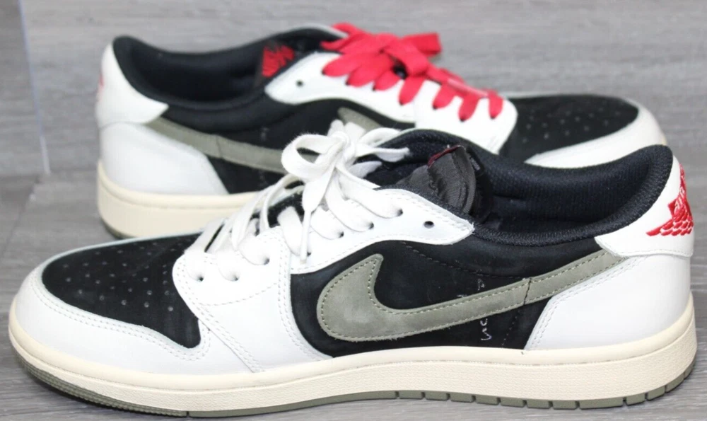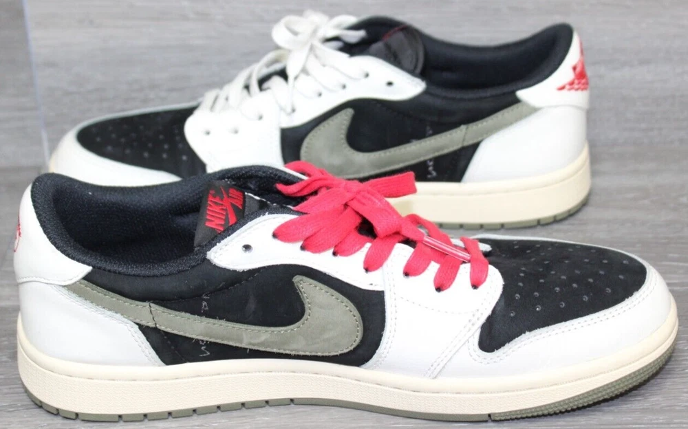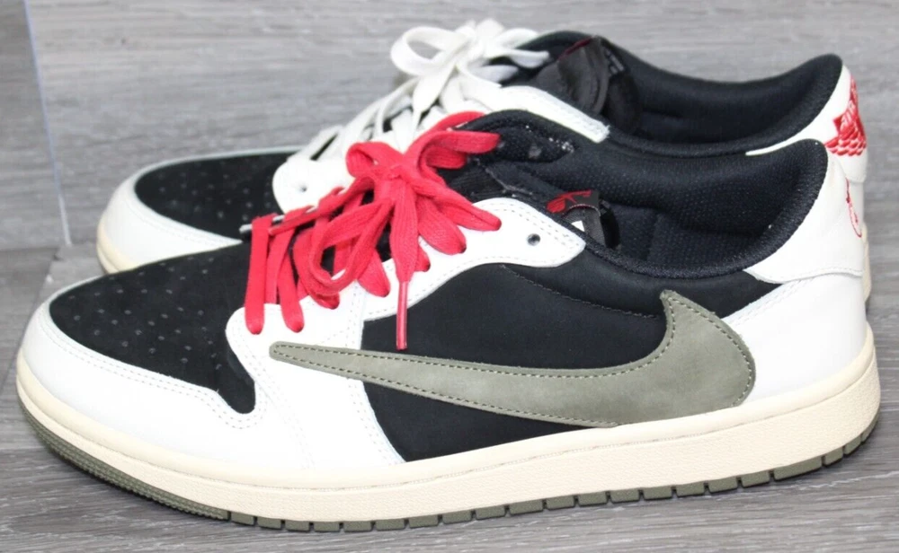 Pre- Owned Nike Women’s Air Jordan 1 Low Travis Scott Olive Size-10.5W/9M Good condition, Some signs of usage can be seen around the shoes. No major damage to ths shoes. Signs of usage may also be seen on the bottom of the shoes. NO BOX. SNEAKERS ONLY PLEASE SEE ALL PICTURES BEFORE PURCHASING. WHAT YOU SEE IN THE PICTURES IS WHAT YOU WILL BE RECEIVING PLEASE NOTE THESE SHOES WILL GO THROUGH AUTHENTICITY GURANTEE BEFORE BEING DELIVERED TO YOU.