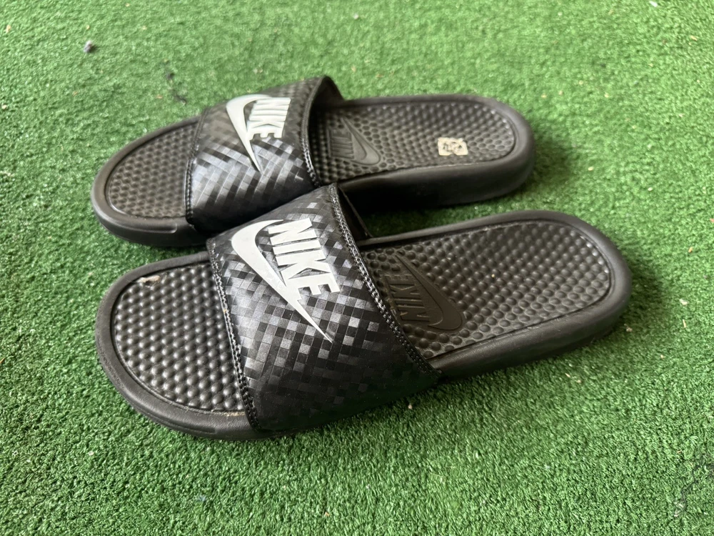 Nike Women's Benassi Just Do It JDI Slip On Slides Sandal Black White Sz 11. Free shipping from a smoke free home. Used a handful of times.