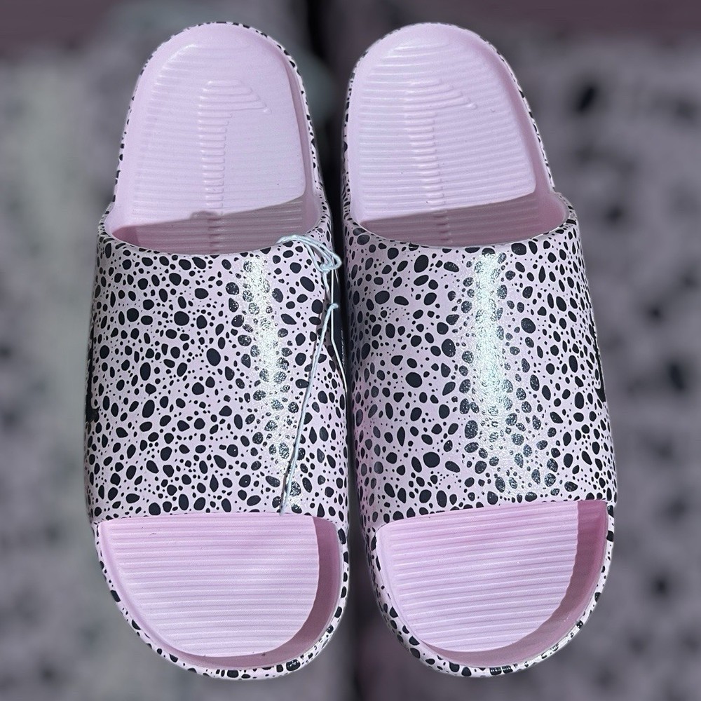 The Women’s Nike Calm Electric Pink Slides Sandals in size 13 are a stylish and comfortable option for any occasion. Featuring a slip-on closure, cushioned insole, and rubber outsole, these sandals provide a snug fit and support for all-day wear. The retro Nike logo accents add a sporty touch to the design, making them perfect for travel, activewear, or casual outings. These sandals come in a sleek gray color with a flecked pattern, offering a versatile option for any season. Made with synthetic materials and standard shoe width, these Nike Calm slides are a reliable choice for men and women alike.