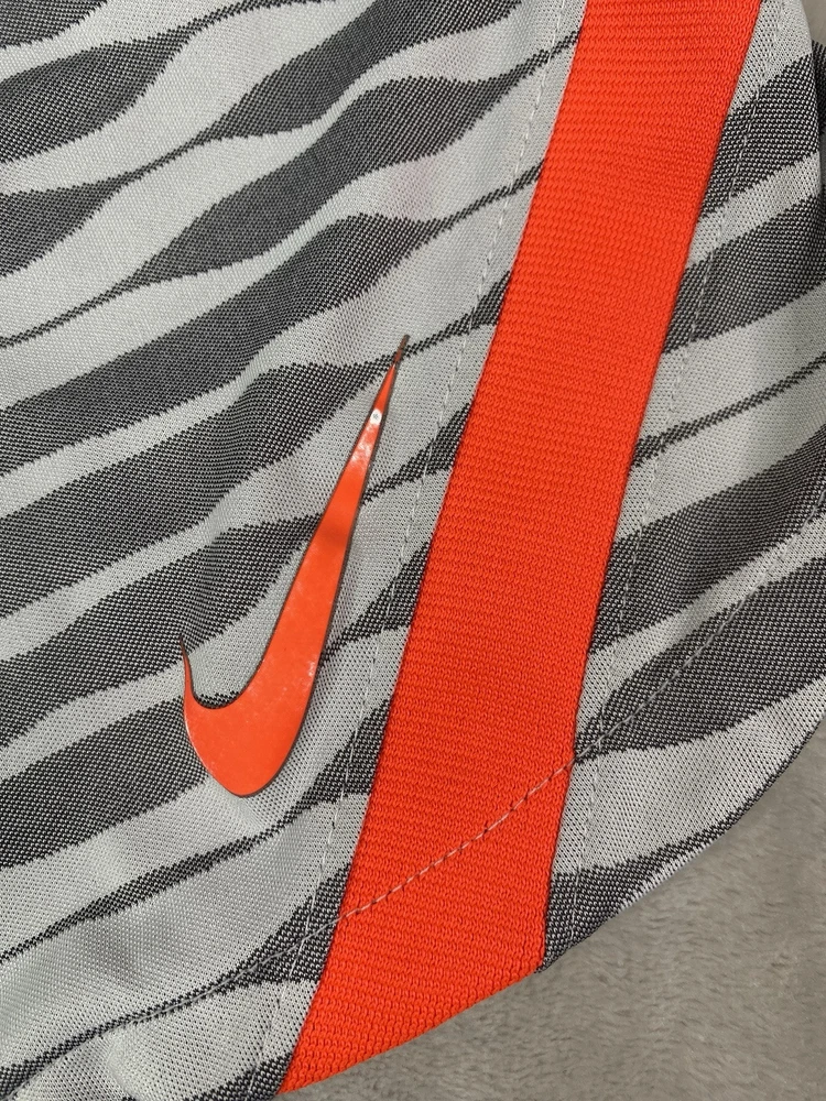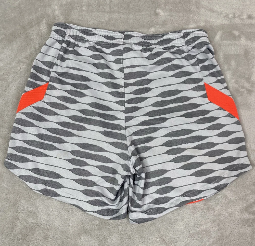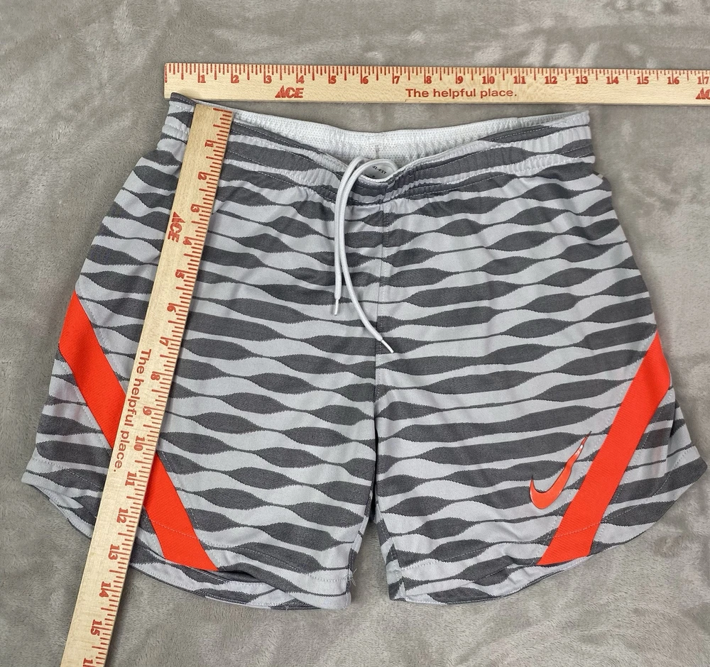 Nike check has some minor wear. Crafted for the soccer enthusiast, the Nike Women's Dri-Fit Strike Soccer Shorts are designed to offer both comfort and mobility. The size small shorts come in a versatile grey, making them a staple for any activewear wardrobe. Lined with Nike's innovative technology, they provide additional coverage and support during high-intensity activities. The shorts feature a convenient drawstring closure for a secure fit and are tailored to fit a regular size type. With a focus on performance, they are ideal for soccer and other athletic pursuits. The dri-fit fabric helps keep you dry and comfortable, while the athletic style ensures you move with ease on and off the field.
