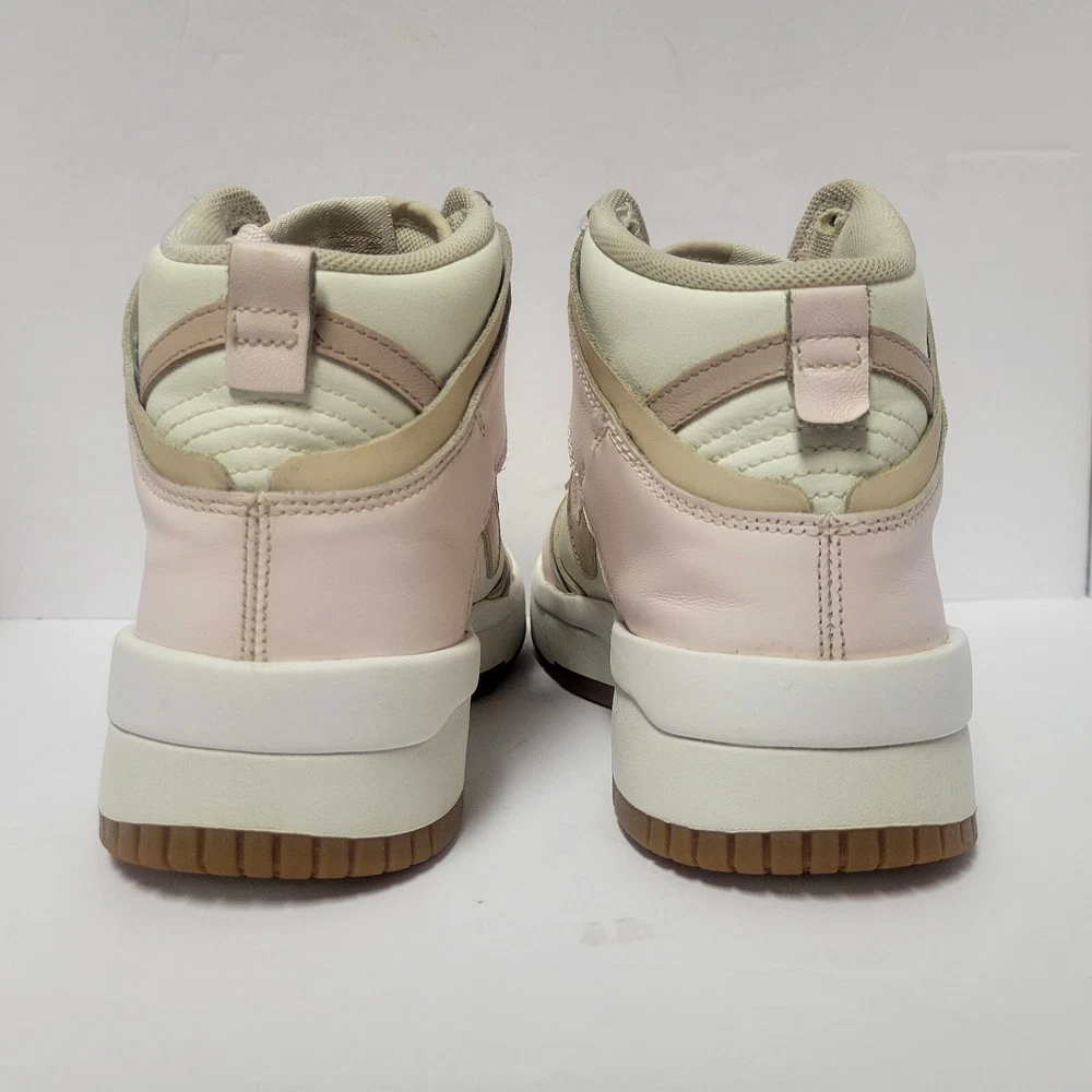 This pair of Nike Dunk High sneakers for women is a great addition to your shoe collection. The shoes feature a lace-up closure, logo accents, and a high-top shoe shaft style. The rubber outsole and fabric lining material make them suitable for various occasions such as activewear, casual workwear, and sports. The Nike Dunk High sneakers are perfect for basketball, skateboarding, running, and jogging. The colorful and retro theme of the shoes makes them suitable for school and volleyball. The shoes are available in a women's size 9 and are suitable for all seasons. Get your hands on the Nike Dunk High sneakers to elevate your shoe game.
