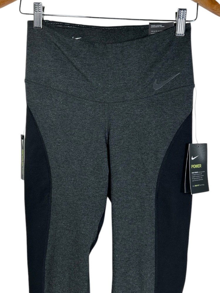 NWT Nike Sculpt Victory Tight Fit High Rise Colorblock Leggings in Black/grey combo High rise/high waisted Fitted all throughout Stretchy and moisture wicking Colorblock design Nike logo on left front hip Full length fit Triblend cotton fabrication Made with polyester/spandex/cotton Made in Sri Lanka Women’s medium Waist: 12.5” across Inseam: 26” Rise length: 13” Full length: 39” #nike #nikeleggings #colorblock #colorblockleggings #nikewomens #athleticleggings #womensnike #nikelegging #colorblock #athleticwear #activewear