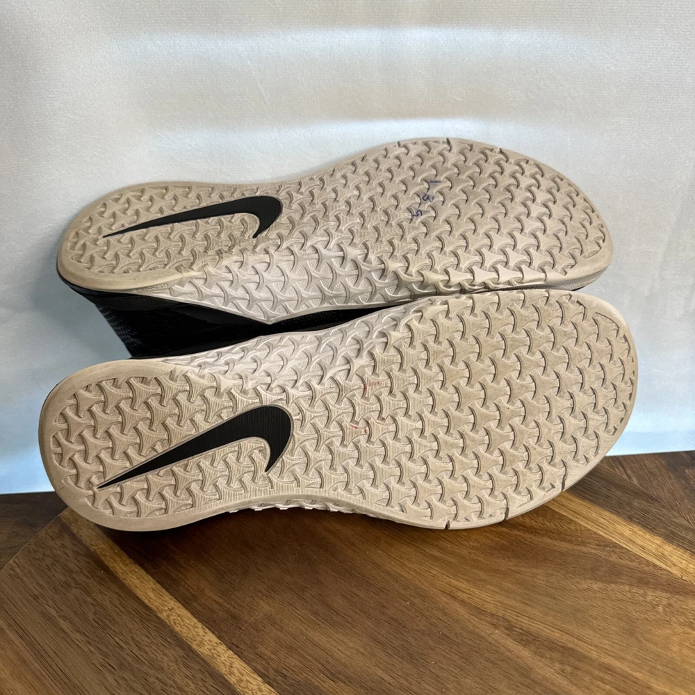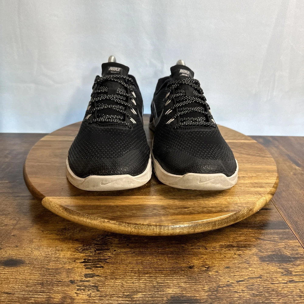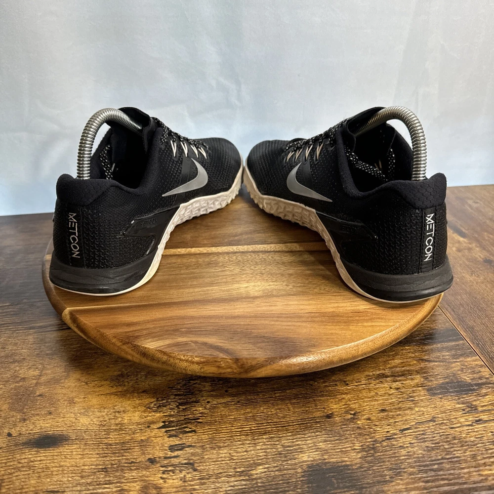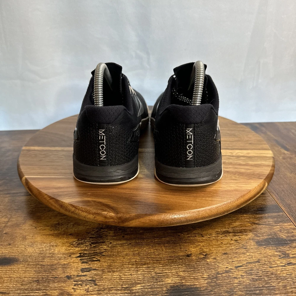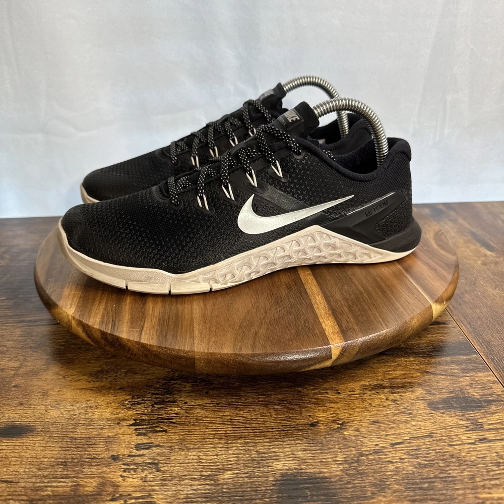 Elevate your training game with these Nike Metcon 4 sneakers in size 9. Designed for women, these athletic shoes are perfect for gym and training, walking, cross training, CrossFit, running, and jogging. The shoes feature a low top shoe shaft style, lace-up closure, and a solid black color pattern with accents of lace and Nike logo. Crafted with synthetic upper material, foam insole material, and rubber outsole material, these sneakers are cushioned, lightweight, breathable, and comfortable. The shoes also have performance features such as a rubber cleat type and are suitable for outdoor and sports themes. Get ready to conquer any workout with these Nike Metcon 4 sneakers.
