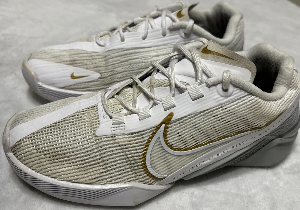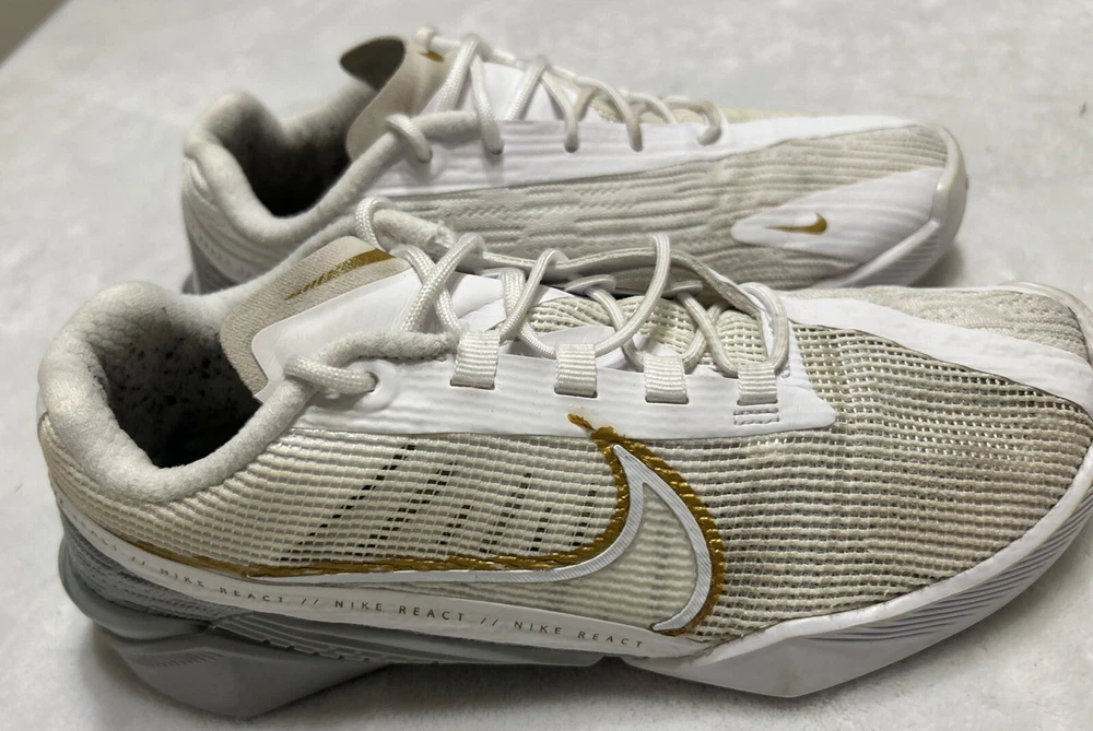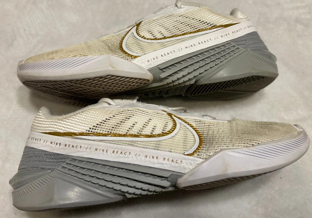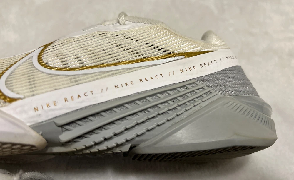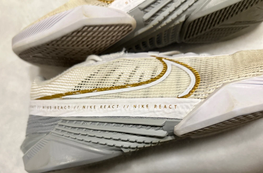 Nike Women's React Metcon Turbo White Metallic Gold Training CT1249-100 Size 7