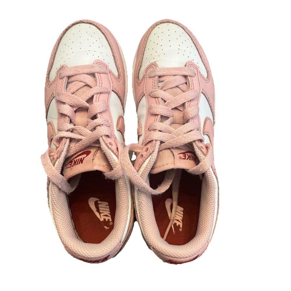 These Nike Youth Girls Pink Size 2 Shoes are a stylish and comfortable option for active young girls. With a round toe shape and lace-up closure, these athletic sneakers feature a rubber outsole for durability and moderate cushioning for comfort. The pink color and Nike logo accents add a fun and sporty touch, making them perfect for summer, fall, and spring seasons. Made with a mesh fabric type, leather upper, and foam insole, these shoes are designed for both performance and style in various activewear occasions.