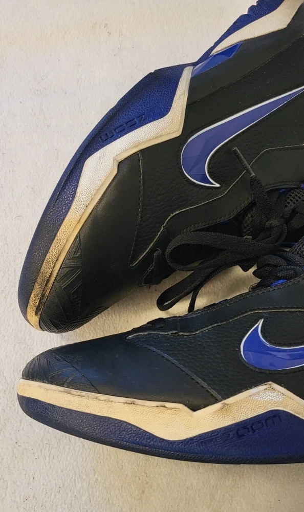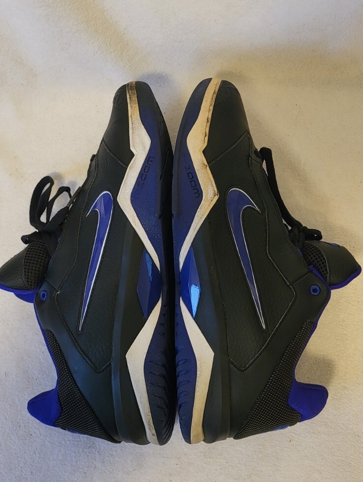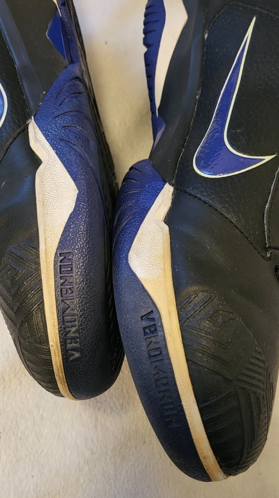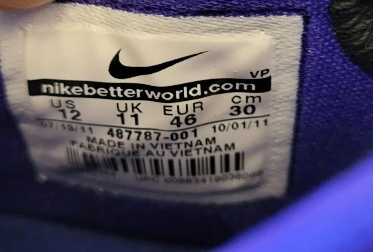 PLEASE LOOK AT THE PICS FOR FLAWS BEFORE BUYING! (SEE LAST PICS! yellowing and decoloring, stains!) This Nike Zoom Kobe Venomenon II sneaker is a must-have for basketball fans. Embodying the style and character of Kobe Bryant, it features a black leather upper with blue accents, lace-up closure, and standard shoe width. The sneaker is perfect for activewear or casual occasions and has a UK shoe size of 11 and a US shoe size of 12. The shoe is part of the Nike Zoom product line and has a style code of 487787-001. It was released in 2011 and is a standard low-top athletic sneaker suitable for all seasons. The shoe has been well-maintained and is in great condition. Get your hands on this stylish sneaker today! Thanks for looking at my other stuff Please follow 🙏