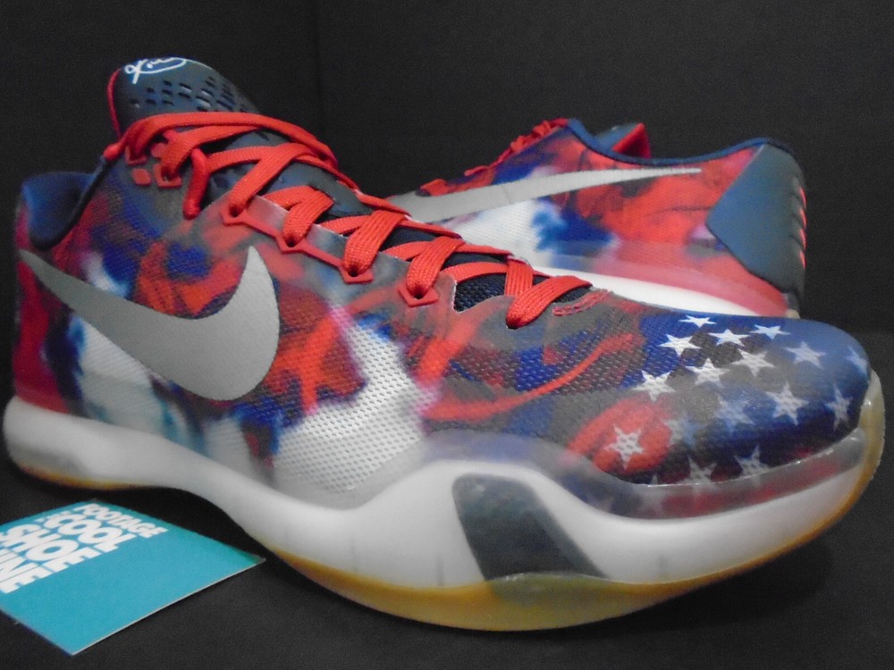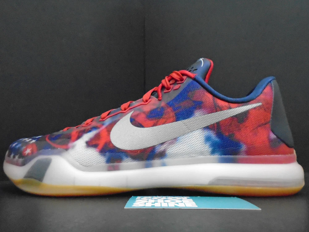 ITEM: 2015 Nike Kobe X ‘ JULY 4TH – INDEPENDENCE DAY ’ (university red/reflect silver/photo blue colorway) - Men's US size 12 STYLE NUMBER: 705317-604 CONDITION: Brand New – Deadstock – Never Worn INCLUDED ACCESSORIES: Original Box ADDITIONAL NOTES: This rare colorway is impossible to find in this size and condition. Guaranteed to be 100% AUTHENTIC MERCHANDISE or your money will be refunded in full. SATISFACTION IS 100% GUARANTEED PAYMENT METHODS: eBay Payment Methods Cash or Credit Card (if picked-up locally @ our shop in Orange, CA) FOOTAGE By THECOOLSHOESHINE! 2740 East Chapman Ave. Orange, CA 92869 SHIPPING & HANDLING: Double boxed via eBay shipping services with delivery confirmation. Please be sure to view all our other listings & contact us with any questions or concerns. Thank you!