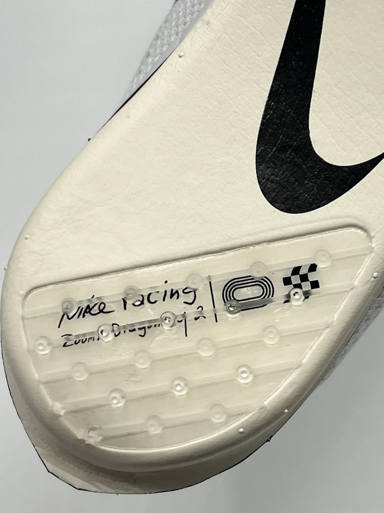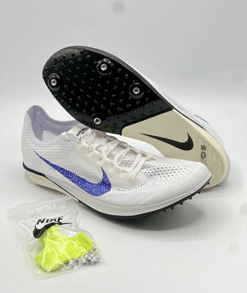 FD8414-900 Experience the ultimate in track and field performance with the Nike ZoomX Dragonfly 2, a racing spike designed for unisex adults. The size Men’s 7.5 US / Women size 9 (6.5 UK, 40.5 EU) shoe boasts a sleek white mesh upper with breathable properties, ensuring your feet stay cool and comfortable during intense workouts. Equipped with a robust metal cleat, this shoe provides superior traction on the track, making it perfect for gym training, school sports, and running events. The Nike ZoomX Dragonfly 2's limited edition design, styled with the iconic 'Blueprint' colorway, offers a visually striking look to complement its high-performance features. The lace-up closure ensures a secure fit, while the lightweight construction keeps your stride quick and agile. Whether you're sprinting or jumping, the shoe's comfort and performance are unmatched, ready to elevate your athletic game year-round.