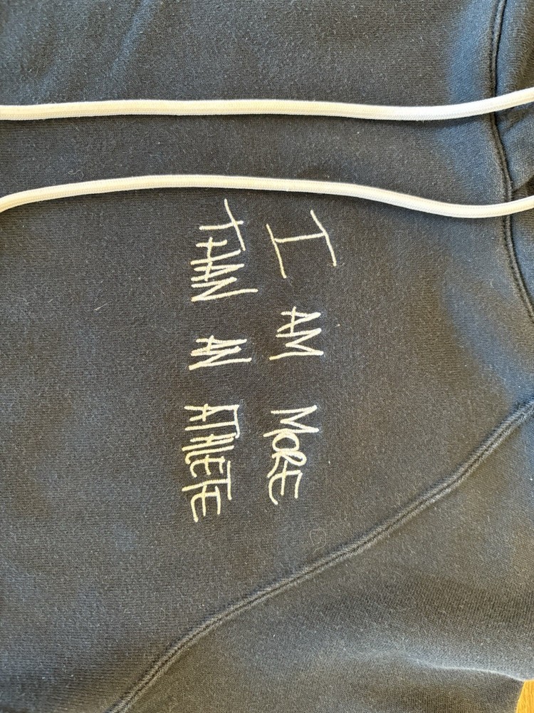 Embrace the spirit of athleticism with the Nike x UN LeBron James More Than An Athlete Hoodie. Designed for the fan who admires the legacy of Labron James, this hoodie is a stylish blend of comfort and inspiration. Crafted in a soft cotton fleece material, it features a solid black color that complements any casual outfit, with a distinctive embroidered logo that adds a touch of exclusivity. This pullover is tailored for a regular fit, ensuring ease of movement, and is equipped with a hood for all-season wear. Ideal for a range of activities including basketball, gym training, and athleisure, it offers functionality without compromising on style. The hoodie is machine washable, making it a hassle-free addition to your wardrobe. Whether you're hitting the court or the streets, this hoodie is a versatile staple that speaks to the essence of the Nike Sportswear philosophy.