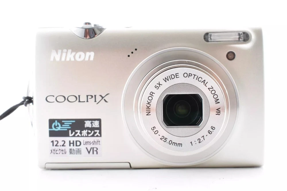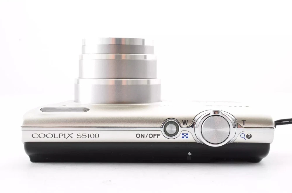 Nikon COOLPIX S5100 12.2MP 5x Optical Zoom CCD Digital Camera - 100% Working Package included -Nikon COOLPIX S5100 Camera - Wrist strap - Battery - SD memory card - **Model**: Nikon CoolPix S5100 - **Camera Format**: 12.2-megapixel, compact digital camera - **Launch Date**: Around August 2010 - **Sensor**: - **Type**: CCD - **Size**: 1/2.3" (6.17 x 4.55 mm) - **Total Pixels**: 12.39 million (approx.) - **Effective Pixels**: 12.2 million - **Max Resolution**: 4000 x 3000 - **Image Size (pixels)**: 4000 x 3000 (12M), 3264 x 2448 (8M), 2592 x 1944 (5M), 2048 x 1536 (3M), 1024 x 768 (PC), 640 x 480 (VGA), 3968 x 2232 (16:9) - **Image Ratio**: 4:3, 16:9 - **Lens**: - **Focal Length**: 5.0-25.0mm (angle of view equivalent to that of 28-140mm lens in 35mm [135] format) - **f/number**: f/2.7-6.6 - **Construction**: 7 elements in 6 groups - **Zoom**: 5x optical, up to 2x digital (angle of view equivalent to that of 280mm lens in 35mm [135] format) - **Vibration Reduction**: Lens-shift VR - **Screen**: - **Type**: 2.7" diagonal TFT-LCD with anti-reflection coating, 5-level brightness adjustment - **Resolution**: 230,000 dots - **Frame Coverage**: 100% horizontal and vertical in both shooting and playback modes - **Storage Media**: SD/SDHC memory card, 32MB internal memory (approx.) - **Movie**: - **HD**: 1280x720p/30fps - **Small Size**: 320x240/30fps - **Standard TV**: 640x480/30fps - **File Format**: AVI Motion JPEG compliant - **ISO Sensitivity**: ISO 100-3200, Auto (auto gain ISO 100-1600), Fixed range auto (ISO 100-400, 100-800) - **Exposure Control**: Programmed auto exposure with motion detection, Exposure compensation (-2.0 to +2.0 EV in steps of 1/3 EV) - **Shutter Speed**: 1/1500-1 sec. (when ISO sensitivity is set to Auto, 1600, 3200), 1/1500-2 sec. (when ISO sensitivity is set to 800), 4 sec. (when scene mode is set to Fireworks show) - **Continuous Shooting Speed**: Up to 10 shots at approx. 0.7 frames per second - **Self-Timer**: Can be selected from 10 or 2 seconds duration - **Flash**: Built-in, TTL auto flash with monitor preflashes, Range (approx.) (ISO sensitivity: Auto) [W]: 0.5 to 6.0m (1 ft. 8 in. to 19 ft.), [T]: 0.7 to 2.5m (2 ft. 4 in. to 8 ft.) - **Interface**: Hi-speed USB, Interface Data Transfer Protocol: MTP, PTP - **Video Output**: NTSC, PAL - **Supported Languages**: Arabic, Chinese (Simplified and Traditional), Czech, Danish, Dutch, English, Finnish, French, German, Greek, Hungarian, Indonesian, Italian, Japanese, Korean - **Dimensions**: 3.82 x 2.24 x 0.87 inches (97 x 57 x 22 mm) - **Weight (including batteries)**: 132 g (0.29 lb / 4.66 oz)