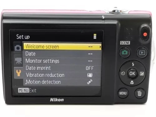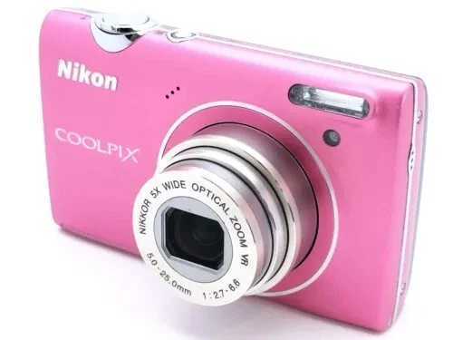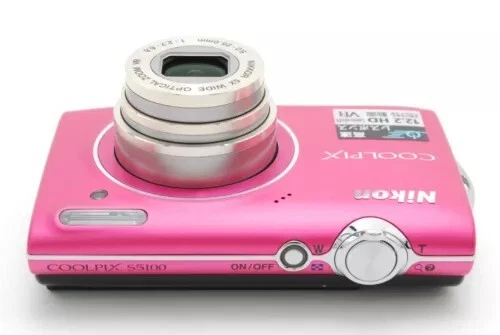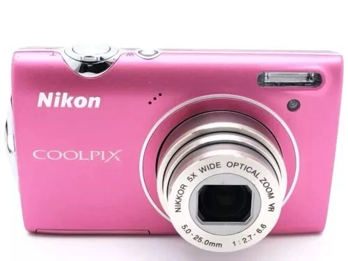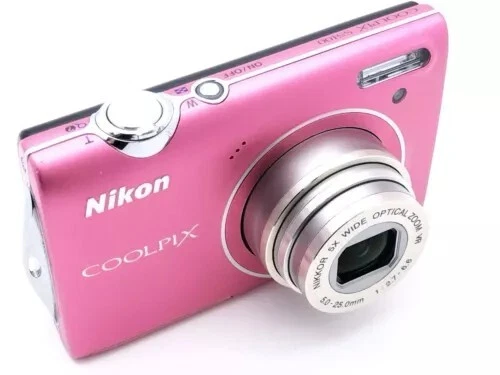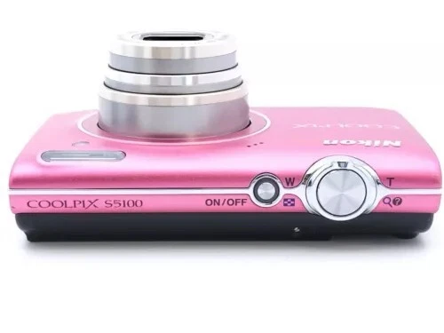Nikon COOLPIX S5100 12.2MP 5x Optical Zoom CCD Digital Camera - 100% Working Package included -Nikon COOLPIX S5100 Camera - Wrist strap - Battery - SD memory card - **Model**: Nikon CoolPix S5100 - **Camera Format**: 12.2-megapixel, compact digital camera - **Launch Date**: Around August 2010 - **Sensor**: - **Type**: CCD - **Size**: 1/2.3" (6.17 x 4.55 mm) - **Total Pixels**: 12.39 million (approx.) - **Effective Pixels**: 12.2 million - **Max Resolution**: 4000 x 3000 - **Image Size (pixels)**: 4000 x 3000 (12M), 3264 x 2448 (8M), 2592 x 1944 (5M), 2048 x 1536 (3M), 1024 x 768 (PC), 640 x 480 (VGA), 3968 x 2232 (16:9) - **Image Ratio**: 4:3, 16:9 - **Lens**: - **Focal Length**: 5.0-25.0mm (angle of view equivalent to that of 28-140mm lens in 35mm [135] format) - **f/number**: f/2.7-6.6 - **Construction**: 7 elements in 6 groups - **Zoom**: 5x optical, up to 2x digital (angle of view equivalent to that of 280mm lens in 35mm [135] format) - **Vibration Reduction**: Lens-shift VR - **Screen**: - **Type**: 2.7" diagonal TFT-LCD with anti-reflection coating, 5-level brightness adjustment - **Resolution**: 230,000 dots - **Frame Coverage**: 100% horizontal and vertical in both shooting and playback modes - **Storage Media**: SD/SDHC memory card, 32MB internal memory (approx.) - **Movie**: - **HD**: 1280x720p/30fps - **Small Size**: 320x240/30fps - **Standard TV**: 640x480/30fps - **File Format**: AVI Motion JPEG compliant - **ISO Sensitivity**: ISO 100-3200, Auto (auto gain ISO 100-1600), Fixed range auto (ISO 100-400, 100-800) - **Exposure Control**: Programmed auto exposure with motion detection, Exposure compensation (-2.0 to +2.0 EV in steps of 1/3 EV) - **Shutter Speed**: 1/1500-1 sec. (when ISO sensitivity is set to Auto, 1600, 3200), 1/1500-2 sec. (when ISO sensitivity is set to 800), 4 sec. (when scene mode is set to Fireworks show) - **Continuous Shooting Speed**: Up to 10 shots at approx. 0.7 frames per second - **Self-Timer**: Can be selected from 10 or 2 seconds duration - **Flash**: Built-in, TTL auto flash with monitor preflashes, Range (approx.) (ISO sensitivity: Auto) [W]: 0.5 to 6.0m (1 ft. 8 in. to 19 ft.), [T]: 0.7 to 2.5m (2 ft. 4 in. to 8 ft.) - **Interface**: Hi-speed USB, Interface Data Transfer Protocol: MTP, PTP - **Video Output**: NTSC, PAL - **Supported Languages**: Arabic, Chinese (Simplified and Traditional), Czech, Danish, Dutch, English, Finnish, French, German, Greek, Hungarian, Indonesian, Italian, Japanese, Korean - **Dimensions**: 3.82 x 2.24 x 0.87 inches (97 x 57 x 22 mm) - **Weight (including batteries)**: 132 g (0.29 lb / 4.66 oz)