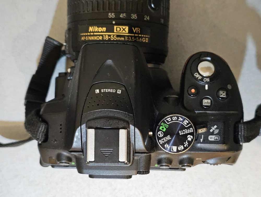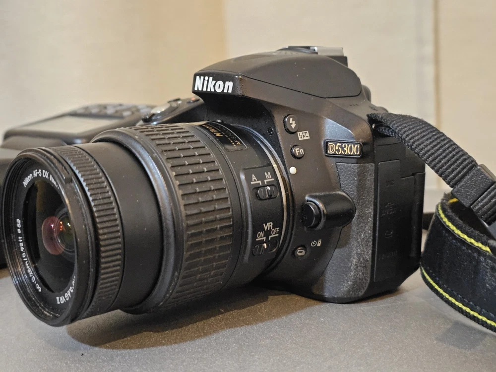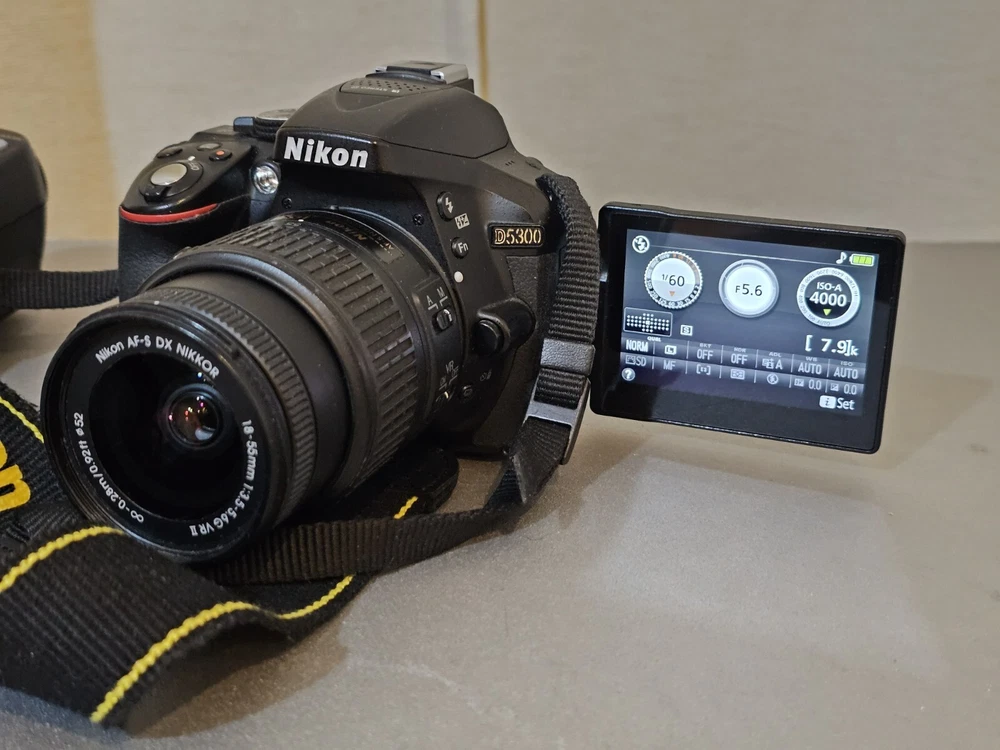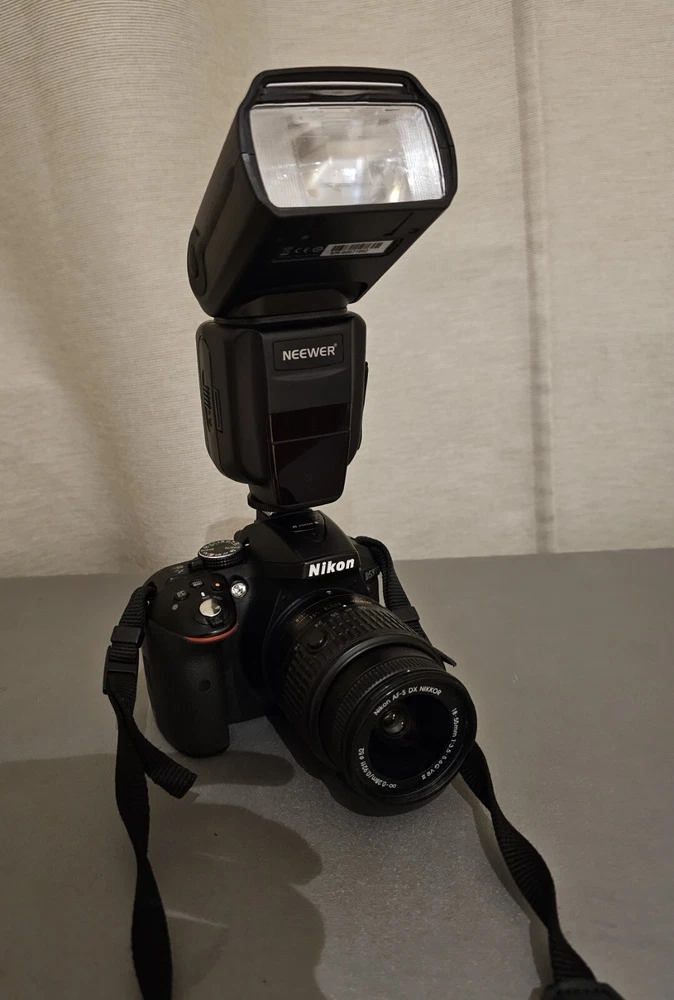 Nikon d5300 dslr camera Used Excellent condition, but it has light dust due to storage. (See the pictures ) Comes with charger ,battery,SD card 64G, flashlight, and essential lens. Doesn't Come lens cover.