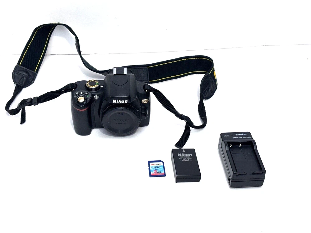 Overall Excellent condition some light scratches on screen minimal only visible when screen is off. Overall Excellent condition The Nikon D60 is a 10.2MP Digital SLR camera body that comes with a strap, battery, charger, and SD card included. It is designed for photographers looking for a reliable and high-quality camera to capture stunning images. This model is part of Nikon's lineup of digital SLR cameras, offering advanced features and functionality for photography enthusiasts.