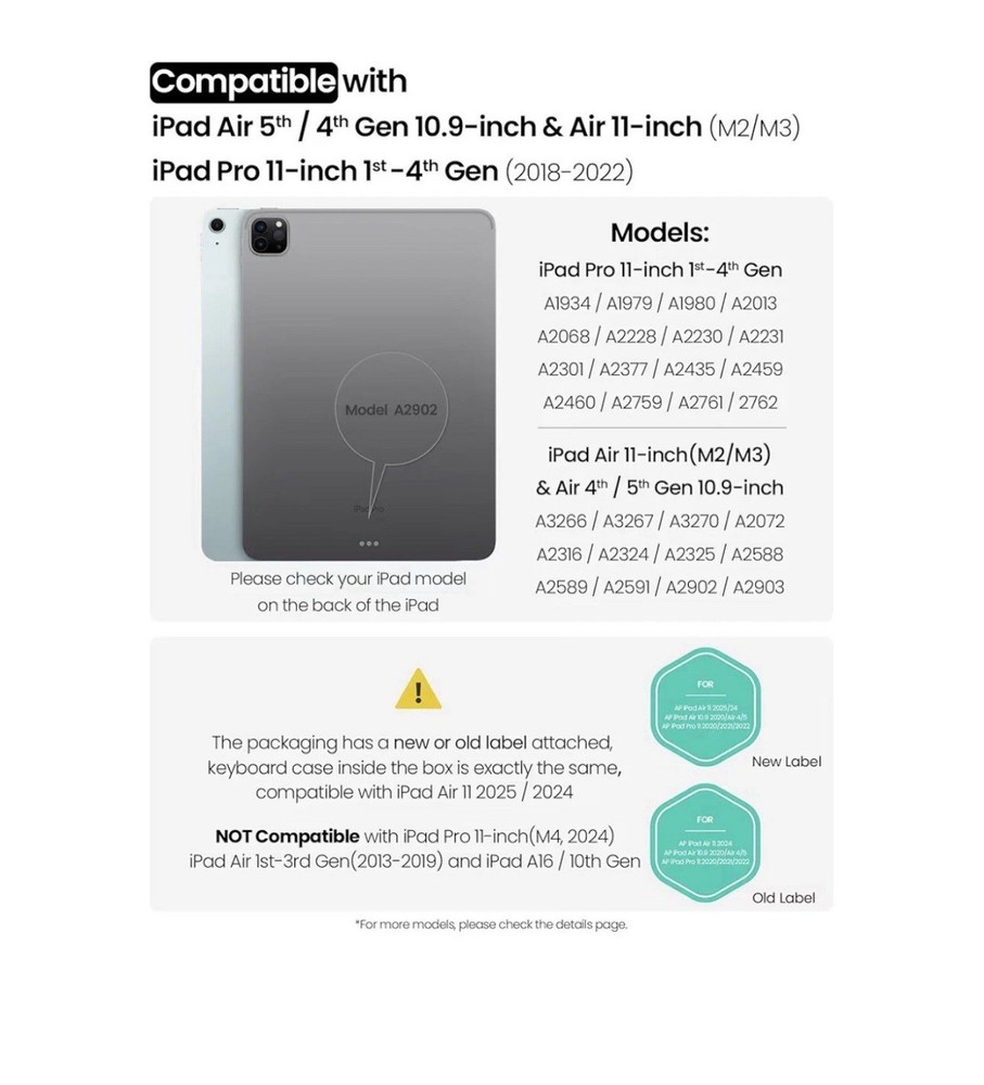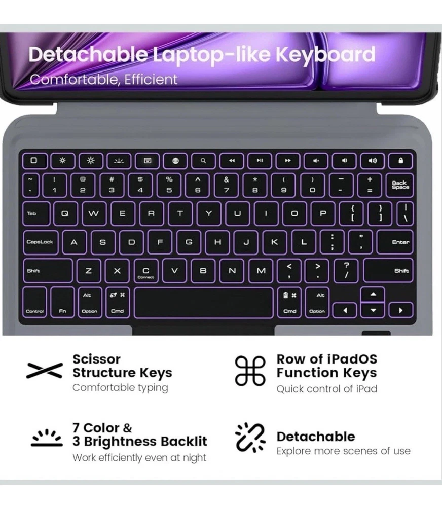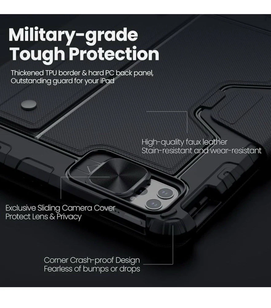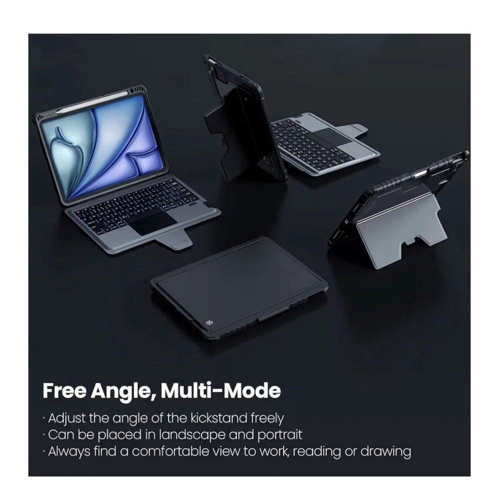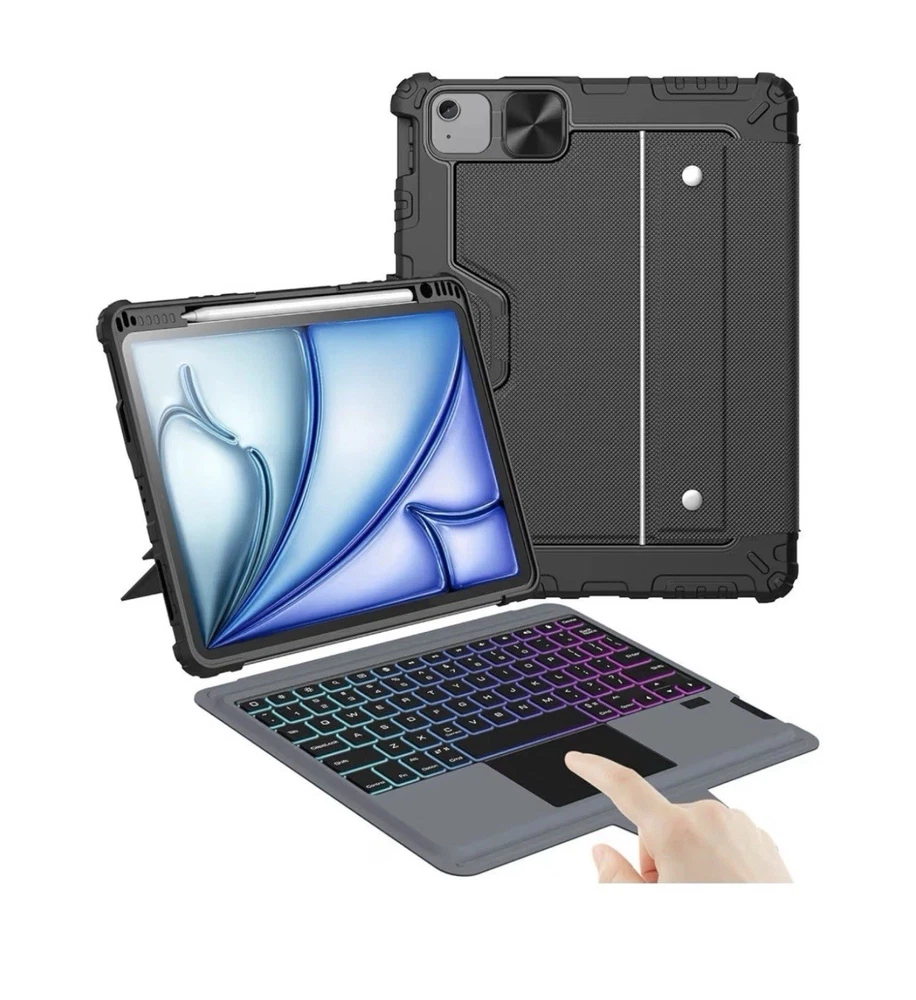 Nillkin IPad Air 11-Inch (M3/M2) Case With Detachable Keyboard, IPad Pro 11(1st/2nd/3rd/4th Gen) & Air 5th/4th Generation Rugged Keyboard Case, 7 Colors Backlit, Trackpad, Portrait/Landscape Modes More features 🌵Turn iPad into a Laptop - Nillkin's cover with Keyboard provides RUGGED protection for your iPad, and turns the iPad into a productive laptop. This versatile accessory helps you work efficiently whether traveling, at the office or at home. **Compatible with iPad Air 11-inch M3 2025 & M2 2024(A3266/A3267/A3270/A2902/A2903/A2904), iPad Air 5th & 4th Gen (A2591/A2589/A2588; A2072/A2316/A2324/A2325), iPad Pro 11 1st-4th Gen (A2325/A2324/A2316/A2072; A2301/A2377/A2459/A2460; A2228/A2068/A2230/A2231; A1980/A2013/A1934/A1979). NOTE: NOT FIT FOR IPAD PRO 11 (M4). 🌵Detachable Backlit Keyboard - Clear keys feedback offers a laptop-like responsive and comfortable typing experience. A full row of function keys, support for iPadOS shortcuts for quick editing of documents, progarmming, photo editing or video editing, maximizing your productivity. The keyboard features 7 colors and 3 levels of backlit brightness, making it possible to work efficiently even in dark environments. 🌵Magical Trackpad - The sensitive trackpad allows for precise taps, supports all iPadOS Multi-Touch gestures such as scroll, zoom and drag. Multitask, edit, and browse without touching the screen, significantly improving efficiency. With palm rejection technology, your typing won't be interrupted. 🌵Tough Protective Case - The heavy-duty thickened TPU frame and PC back, combined with a corner shockproof design, provide full-body military-grade superb protection for your iPad, safeguarding it from bumps or drops. surface covered with high quality faux leather, stain-resistant and wear-resistant. Unique sliding camera cover protects the lens while keeping your privacy. 🌵Free Angle, Multi-Mode - Kickstand offers adjustment from 110°-180°, can be placed in landscape or portrait, stable and durable, you can find the perfect angle for working, creating, browsing, taking note or writing. The keyboard can be easily detached to enjoy drawing or reading, explore more scenes of use. 🌵Outstanding Battery Life - With a standby time of up to 180 days and 100 hours of use on a full charge, the keyboard supports long-term outdoor work and business trips. It features auto sleep/wake functionality and uses the same Type-C charging port as the iPad. Additionally, an easy-access holder securely stores the Apple Pencil while it charging, making it convenient to take out and use.