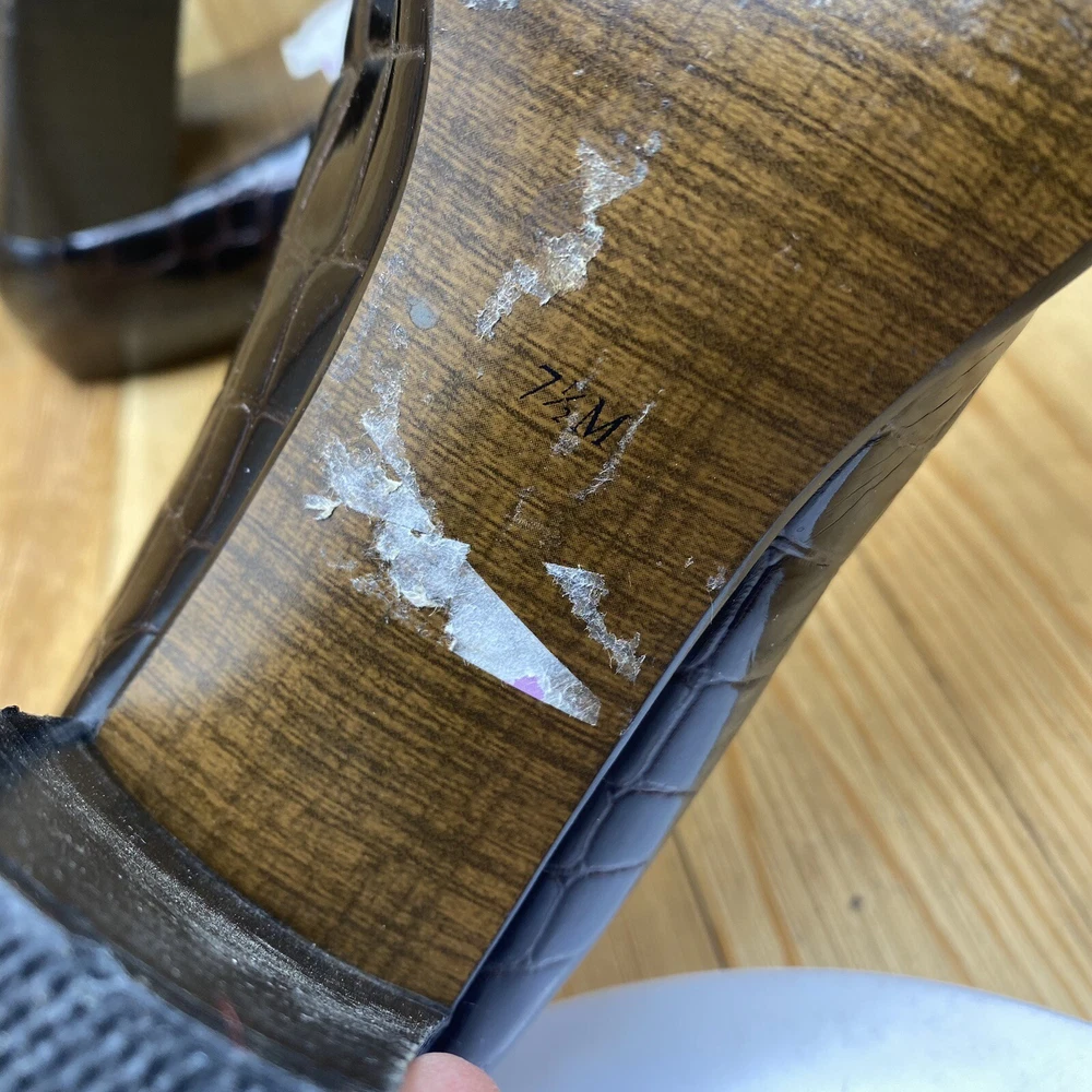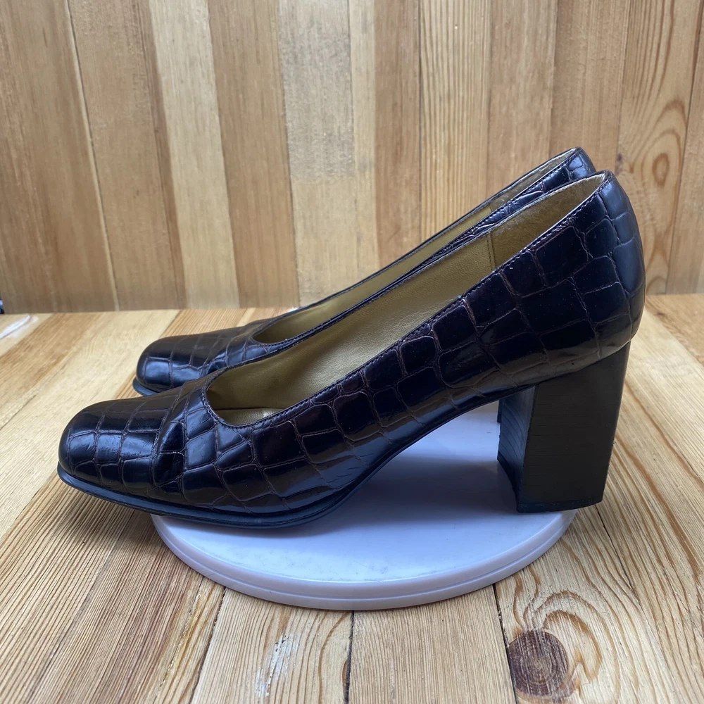 Nina Dress Heels Shoes Women's Size 7.5 Pump Croc Print Square Toe Brown