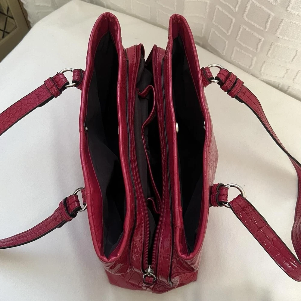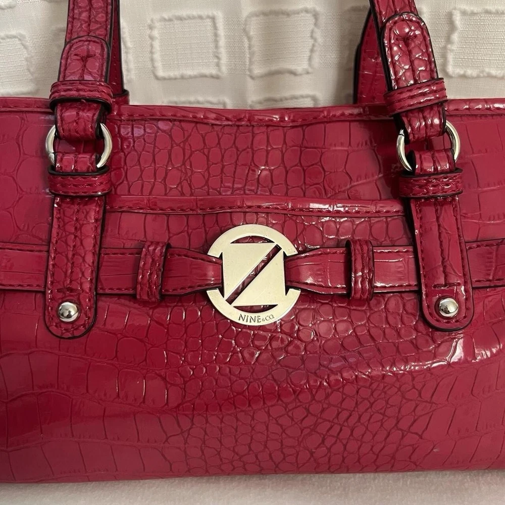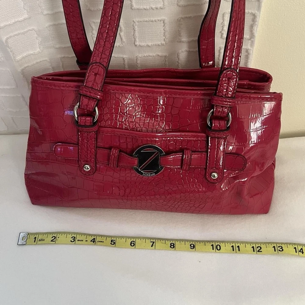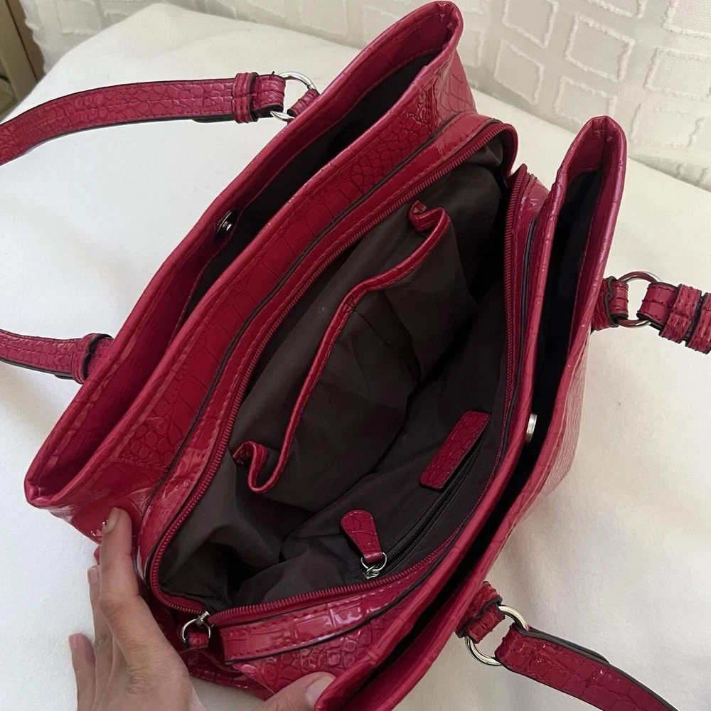 Red Y2k faux leather shoulder bag with silver hardware & crocodile print 🤍 this item is in great condition, tho with signs of wear (the bag has some minimal white stain at the bottom and side part, it’s a but deformed) but this is very spacious, handy and perfect for casual wear 🤍 this is giving y2k red hot girl vibes!!! length: 13” width: 7.5” #fauxcrocodileleather #y2k #hotgirlred #y2khandbag #nine&co
