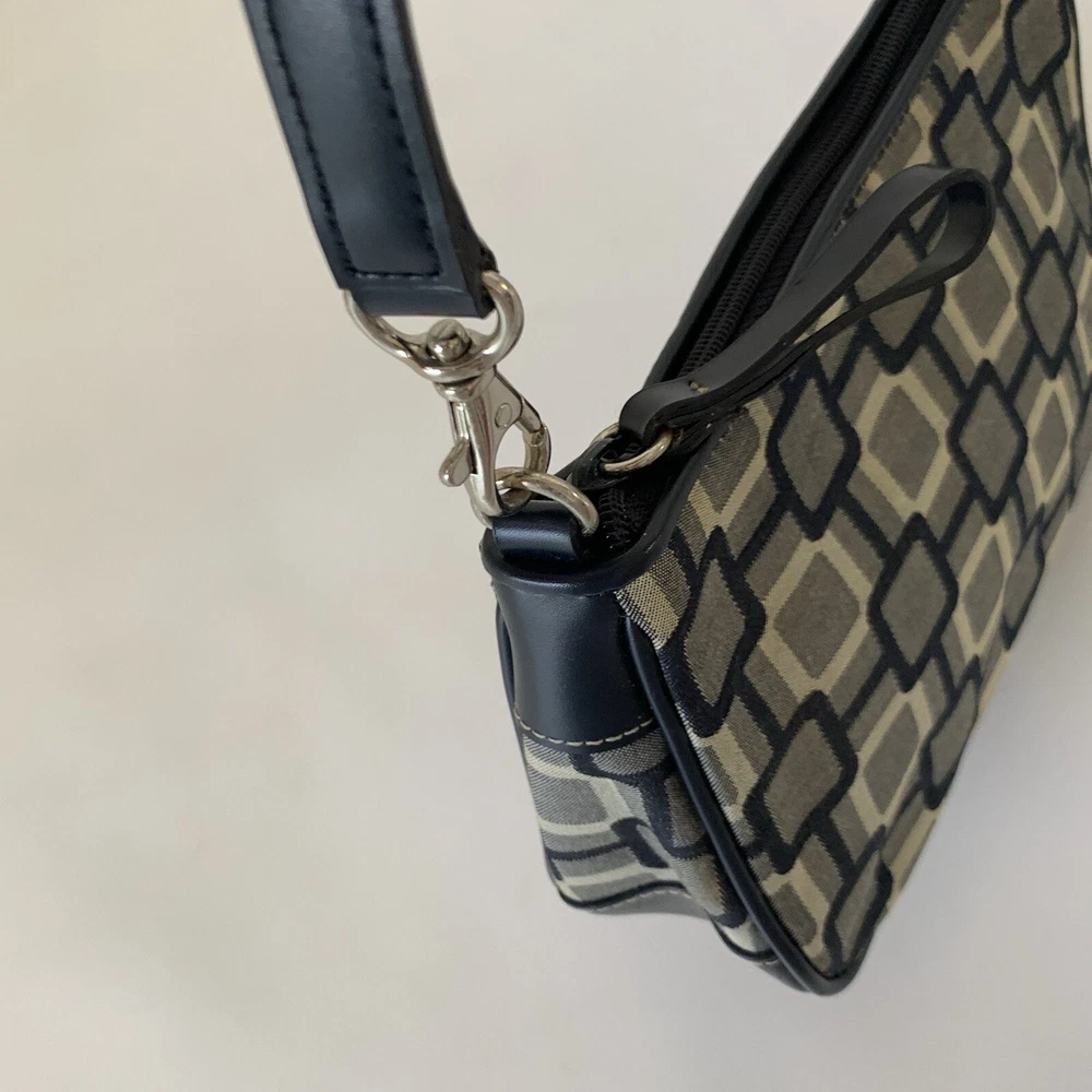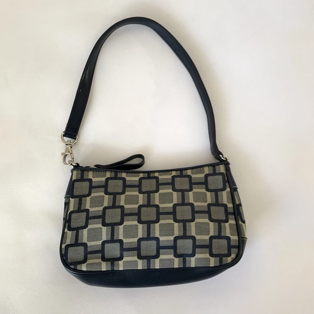 - Vintage Nine West Purse Shoulder Bag Small rectangular shape Navy Blue Squares Geometric Zip close Strap detaches at one side Small zip pocket inside See photos for measurements Great preowned condition. Mark on one side outer. Inner bottom lining marks- see photos for flaws circled in green Tags: /vintage retro colorblock grannycore grandmacore 8 50s 60s 70s grandpacore victorian edwardian elizabethan mid century modern mcm old school nostalgia nostalgic folklore aesthetic cottagecore delicate feminine modest muted romantic stunningHandbag 90s Y2K Retro Coastal nautical