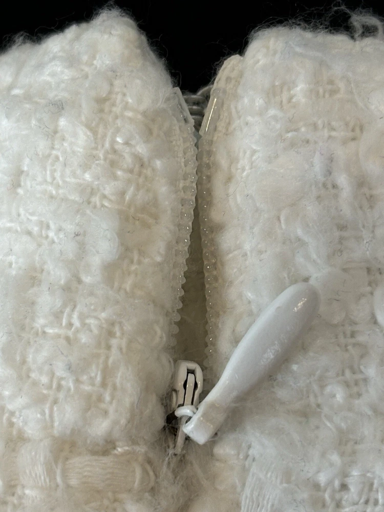 Thanks for looking! Nine West Y2K Tweed Mini Skirt Womens Size M White Lined Preppy Classic 2000s. The 2 pockets on front of skirt are faux, they are not functional. Skirt is brand new but has a flaw. The zipper zips up but stops right at the top and won't go further. The skirt is closed by side zipper and hook/latch. Please see last picture. Measurements: - Please refer to the photos above for all measurements. - Please compare our measurements to that of one of your favorite garments. - Please note, item measurements are approximate . - Colors may differ slightly in shade from photos to actual item due variances caused by photography lighting and monitors. All items are bagged and sealed after being photographed, then stored in a smoke free environment to ensure the item is exactly the same as when photographed. We always carefully package and ship ASAP. Feel free to contact us with any questions. All pre-owned items are washed per eBay standards and policies. We greatly appreciate your business! Please remember to leave positive feedback if you are happy with your purchase! Thanks for looking!