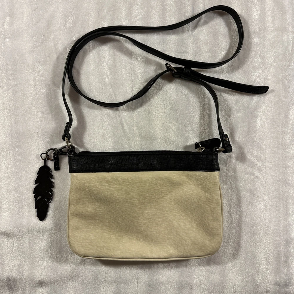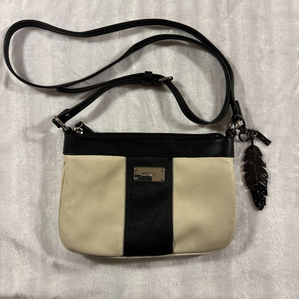 Nine West small bag, with strap, keychain metal feather white and black bag