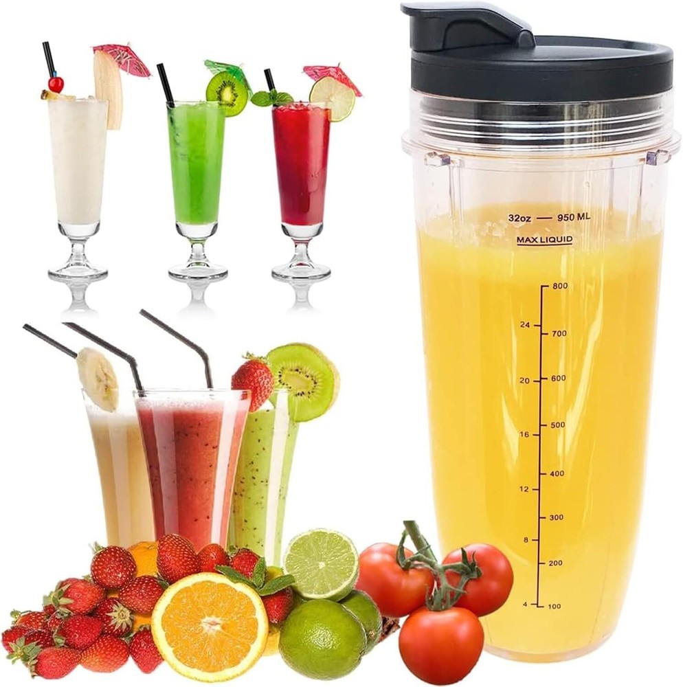 Ninja 32 oz Replacement Cups with Lids and 6-Fin Extractor Blades
