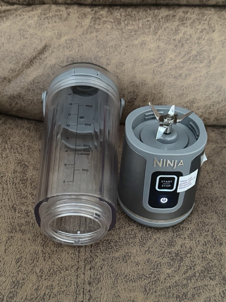 Pre-owned Ninja Blast Cordless Portable Blender (Model BC155SGY) in gray. Unit has been tested and powers on properly. A compatible charging cable and wall charger are included so it is ready to use. Includes: • Blender base • Blade assembly • Bottle with flip lid • Generic charging cable + wall adapter Condition: Light cosmetic wear from normal handling. See photos for exact condition. Features: • Cordless rechargeable design • One-touch blending • Portable travel bottle • Compact and lightweight Ships securely packed.