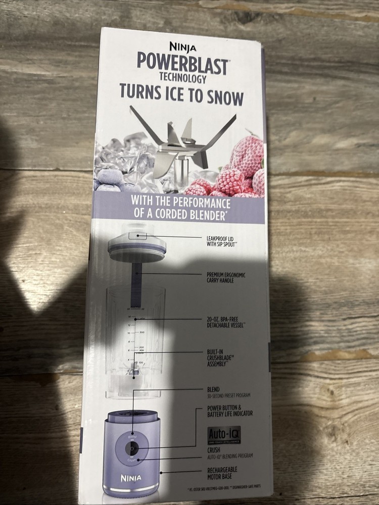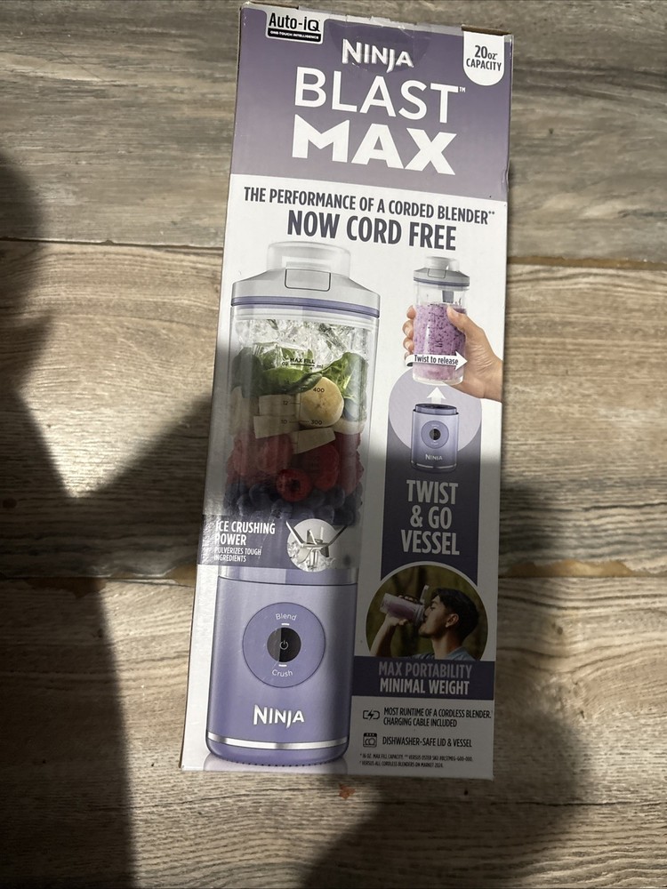 The Ninja Blast Max BC200LD Portable Blender with Twist & Go is a powerful personal blender with a capacity of 22 oz. This compact and portable blender from Ninja is perfect for blending smoothies, crushing ice, and creating delicious beverages on the go. With two speeds and a manufacturer warranty, this navy-colored blender is a convenient and reliable option for those looking for a versatile and easy-to-use appliance for their kitchen.