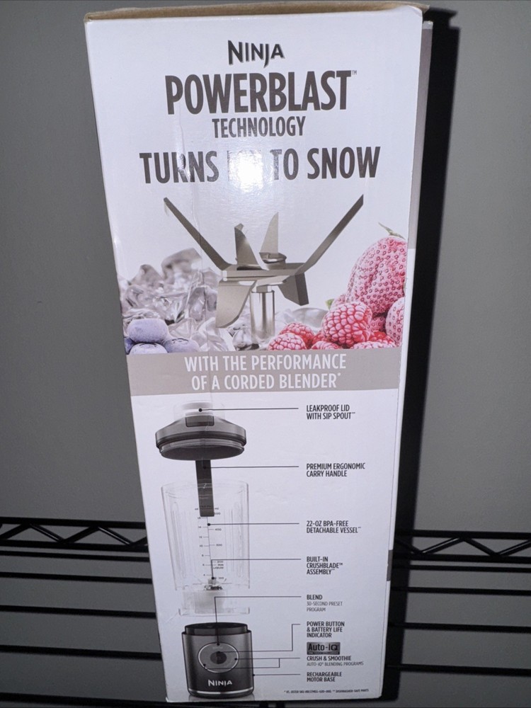 Voltage: 120 V Power Source: Battery Item Depth: 4 in Country/Region of Manufacture: China Color: Gray Appliance Capabilities: Blend Type: Personal Blenders Item Weight: 4 lbs Manufacturer Warranty: 1 Year Brand: Ninja Model: Does not apply Number of Items: 1 Capacity: 22 oz Appliance Uses: Smoothie, Frozen Drink Components Included: Blender Item Width: 1-15 in