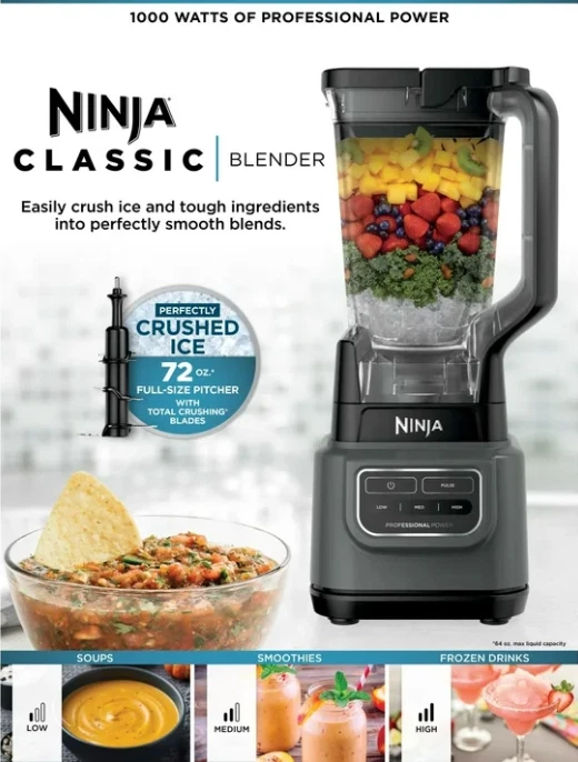 Title: Ninja Classic Countertop Blender Gray 1000W 5-Speed BE200 Description: Ninja classic countertop blender designed for everyday blending tasks. Suitable for smoothies, shakes, sauces, and frozen drinks. Equipped with a powerful motor and multiple speed settings for versatile food preparation. Designed for residential kitchen countertop use. Features: • Classic countertop blender • Powerful motor for everyday blending • Multiple speed control for versatile use • Suitable for smoothies, shakes, sauces, and frozen drinks • Durable blending jar • Easy-to-use controls • Designed for residential kitchen use Specifications: • Brand: Ninja • Model Number: BE200 • Product Type: Countertop Blender • Power: 1000 Watts • Speed Settings: Multiple speeds (5-speed control) • Color: Dark Gray • Application: Kitchen / Countertop • Intended Use: Residential Buy With Confidence: Buy With Confidence Fast handling, secure shipping, and responsive customer support — shop with confidence knowing you’re buying from a reliable seller committed to quality and transparency. If you have any questions, please feel free to reach out. We always take care of our buyers and are committed to providing a smooth and reliable shopping experience.