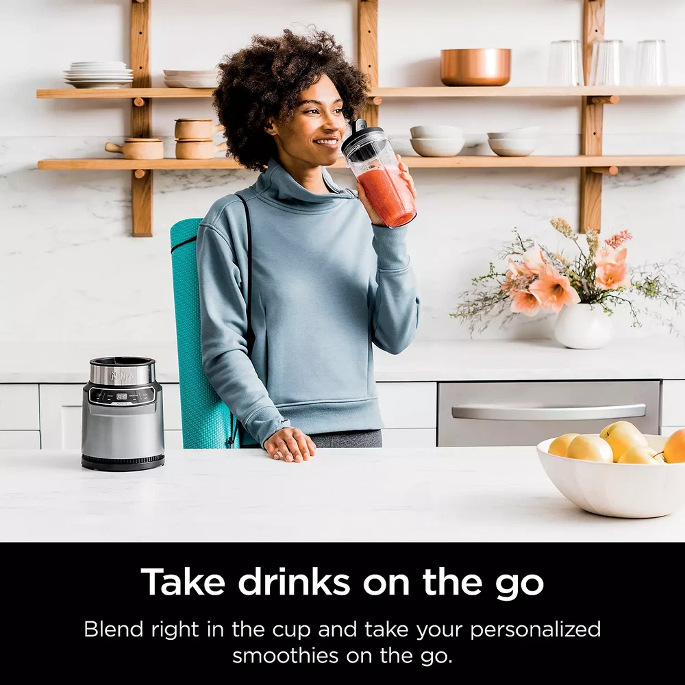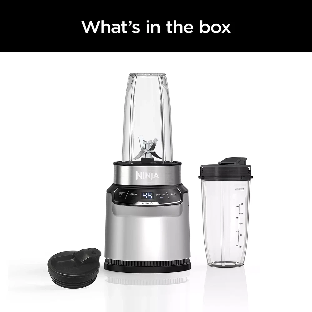 The Ninja Nutri-Blender Pro with Auto-iQ features a powerful 1100-peak-watt motor to pulverize tough ingredients. Two preset Auto-iQ Programs combine unique pulsing, blending, and pausing patterns to take the guesswork out of blending. Blend in your Ninja Single-Serve Cup and take your drink to go. PRODUCT FEATURES 1100-peak-watt motor provides the best of Ninja blending and powers through everything in the cup Two Auto-iQ® Programs provide one-touch intelligence and remove the guesswork Pro Extractor Blades Assembly easily crushes ice and breaks down whole fruits and veggies to create nutrient extractions Blend inside one of the two included Single-Serve Cups (24 oz.) and use the included spout lids to take your drink on the go Included recipe guide provides drink-making inspiration Clean up as easily as you blend with dishwasher-safe cups, lids and blade assembly WHAT'S INCLUDED 1100-peak-watt blender motor base, Pro Extractor Blades® assembly, 24-oz. single-serve cups, 2 spout lids & Inspiration Guide with 20 recipes PRODUCT CARE Manufacturer's 1-year limited warranty For warranty information please click here PRODUCT DETAILS Model no. BN401 1100 watts 31.5-in. cord length 24-oz. capacity 6.34"L x 6.93"W x 14.29"H