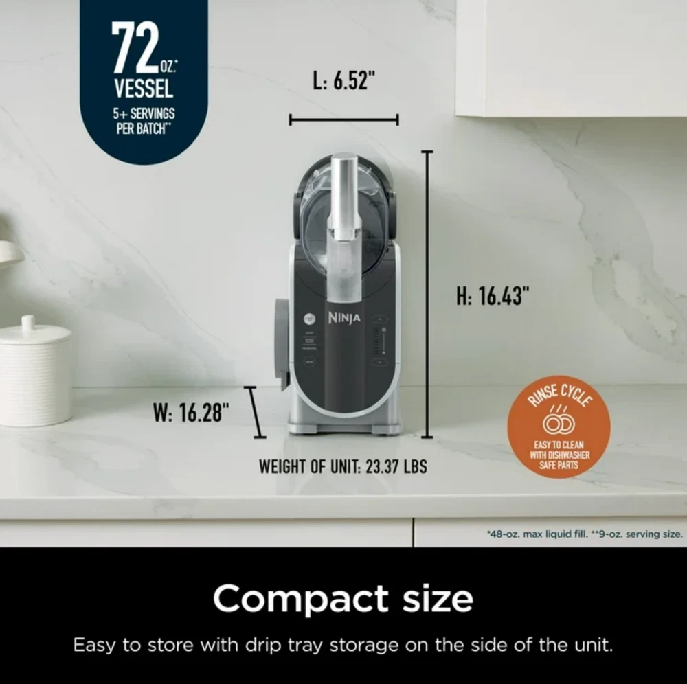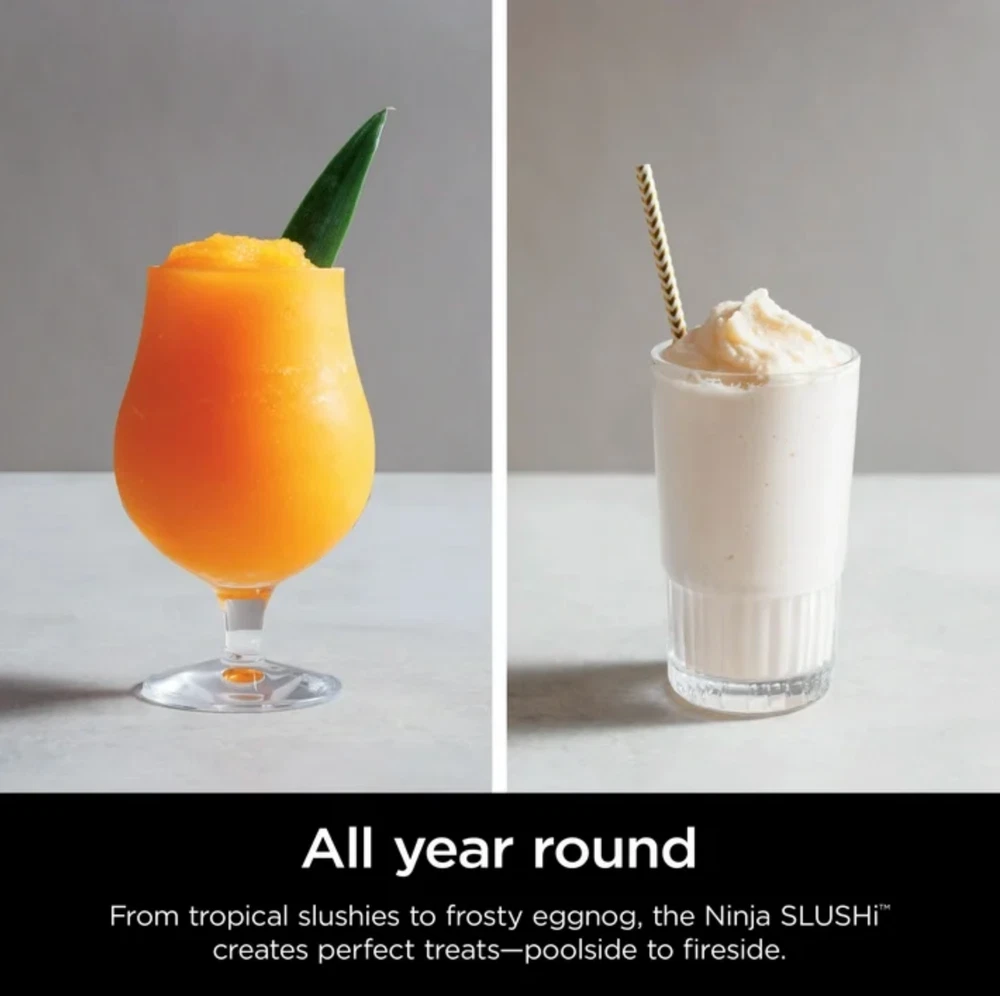 This is a sale of a SEALED Ninja SLUSHi 3-in-1 72 oz Professional Frozen Drink Maker **FAST FREE, SAME BUSINESS DAY SHIPPING!** About this item Rapid Chill Technology is our innovative two-part system that spins the auger around the cooling cylinder to freeze liquid and maintain optimal temperature for the perfect icy treats with no ice needed With this versatile machine, turn your favorite liquids into smooth, flavorful frozen drinks: wine, coffee, soda, juice, chocolate milk, and more. Simply pour the liquid in, select your program, and watch it transform Temperature and texture controls deliver consistently smooth results in up to 60 minutes at max capacity. *Creating drinks can take 15-60 minutes depending on ingredients, volume, and starting temperature. Must include sugar to slush Hack your sugar-free recipes. Sugar-free recipes will not slush properly on their own. Add one of our recommended sugar substitutes to the recipe to ensure perfect slushing. 3 preset programs give you tailored temperature settings to get you the perfect output every time no matter what you put in Customize whether you want the output to be thicker or thinner than the preset setting with temperature control Easy fill-up, top off, and remove for cleaning. Slushes quickly and keeps drinks frozen for up to 12 hours Easy to clean with dishwasher-safe parts. Features a detachable lid and drip tray allowing for easier cleaning in between uses SLUSHi makes up to 72 oz. of slush from a max capacity of 48 oz. of liquid. It’s the ultimate hosting hack Ninja SLUSHi 72 oz 3 Programs Professional Frozen Drink Maker, 200 Watts,FS300 ALL SALES ARE FINAL Thank you & Enjoy!