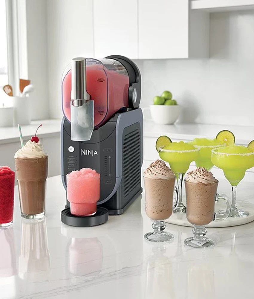Item #20593275 From Ninja, the SLUSHi™ 88 oz. Professional Frozen Drink Maker features: Enjoy frozen drinks and slushies at home with the Ninja SLUSHI™, a high-performance slush machine that requires no ice! Featuring exclusive RapidChill Technology, it freezes liquids evenly for smooth, flavorful results every time. With five preset settings, you can customize the thickness and texture of your drink, from light and sippable to thick and spoon-worthy. The large 88-oz. capacity makes 7+ servings per batch, perfect for entertaining, while its 12-hour temperature retention keeps drinks icy cold. Cleanup is effortless with dishwasher-safe parts and a built-in rinse cycle. Elevate your refreshment game with the ultimate frozen drink maker! No ice needed: rapidchill technology freezes liquid evenly for perfect icy treats Superior frozen drink experience: turn liquids into smooth, flavorful frozen drinks 5 preset settings: automated programs give you tailored temperature settings Temperature control: customize whether the output is thicker or thinner than preset Hassle-free cleanup: easy to clean with dishwasher-safe parts and rinse cycle Hack sugar-free recipes: add recommended sugar substitutes to ensure perfect slushing Approx. 16.3" L x 6.54" W x 16.93" H Approx. 29.74 lbs What's in the box: 200w motor base with rapidchill technology 88 oz. vessel (64 oz. max fill) with comfort handle and anti-drip spout Condensation catch Auger 2-part drip tray Removable spout shroud Inspiration guide with 10 recipes Imported. DMS: 0725 196 FS301 Ninja’s inspiring kitchen appliances make it quick and easy to prepare delicious, healthy food and drinks at home – whether you’re cooking for yourself, entertaining friends or feeding a hungry family. Ninja gives you more, with multiple functions in every appliance and automatic programs that do the hard work for you. From powerful Ninja blenders and precise food processors to versatile cooking appliances, including Ninja Foodi multi-cookers, grills, air fryers and more. Every product is engineered in-house and designed for speed, power, ease and incredible results. Always innovating, our engineers continue to create new technologies that combat your food-prep frustrations.