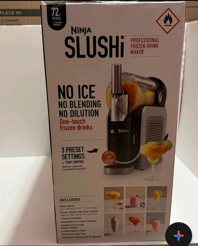 The Ninja SLUSHi FS300 72oz Frozen Drink Maker in Gray is an electric-powered appliance designed for making delicious frozen drinks. With 3 presets and a rapid chill feature, this slushi machine can easily prepare your favorite beverages with a capacity of 72 ounces. The machine is made of ABS plastic and has a compact size of 16.28 x 6.52 x 16.43 inches, making it a convenient addition to any kitchen or bar area. The Ninja brand ensures quality and performance, while the dishwasher-safe parts and variable speed options add to the overall functionality of this home essential.