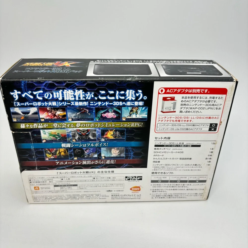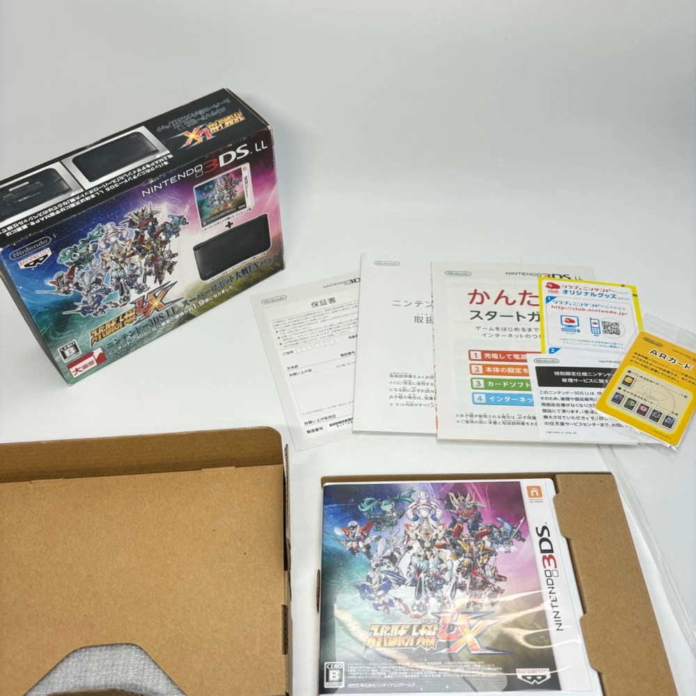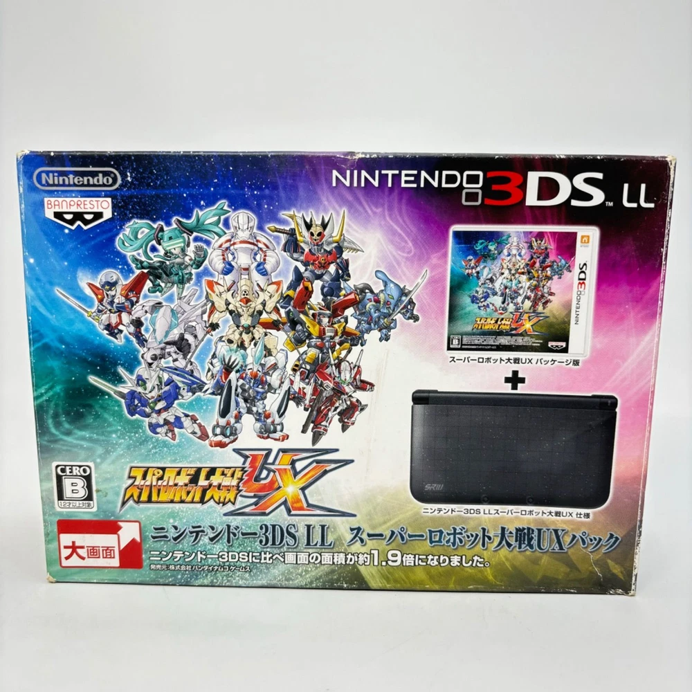 Nintendo 3DS LL Super Robot Wars UX Pack Limited Edition Handheld Console Description Condition: Used Language: Japanese This is the Japanese version. This is the Japanese version, so please make sure it is compatible with the product in your country before purchasing. If it is region locked, please unlock it yourself. The Nintendo 3DS LL Super Robot Wars UX Pack Limited Edition console offers an exclusive design for fans of the Super Robot Wars franchise. This special edition handheld gaming system includes unique artwork and a special bundle to enhance your gaming experience. Perfect for collectors and gamers alike, it features a larger screen for an immersive gameplay experience. Key features: Model: Nintendo 3DS LL Edition: Super Robot Wars UX Pack Limited Edition Screen size: 4.88 inches (top) and 4.18 inches (bottom) Connectivity: Wi-Fi, StreetPass, SpotPass, and online multiplayer Included in the pack: Console, special edition packaging, and additional accessories (game not included) Origin: Japan Dimensions: 5.3 x 2.9 x 0.9 inches (LxWxH) Weight: Approximately 10.2 oz (with battery) This console is perfect for fans of the Super Robot Wars series, featuring exclusive content and unique design elements. Play your favorite games on a beautifully crafted handheld system with a sleek, futuristic look. Ideal for both casual players and collectors! Shipping We will send the item by FedEx, DHL, SpeedPAK, or Japan Post. We always send the item with a tracking number, So please place an order without any concern on delivery. You can always track the delivery status. Delivery date: 5-10 business days to US(FedEx and DHL), 8-12 days to US(SpeedPAK), 10-20 days to US(Japan Post). Delivered to all countries within 5 -20business days. Shipping is only available to the address registered in eBay. If you want us to send another address, please change your address on eBay and then place an order. Shipping is available from Monday to Friday. Weekends are not available because freight companies are closed. ?Delivery may be delayed due to the weather, customs clearance, and conditions of the destination country. The delivery method may change depending on the country. International Buyers - Please Note: Import duties, taxes, and charges are not included in the item price or shipping cost. These charges are the buyer's responsibility. Please check with your country's customs office to determine what these additional costs will be prior to bidding or buying. Thank you for your understanding.