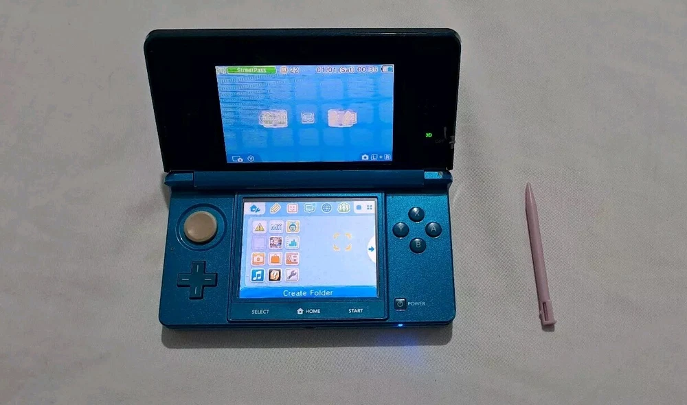 Nintendo 3DS Aqua blue region free with 2GB SD Card and stylus pen No charger included I've changed the touch screen myself so it been opened before If you have any questions please contact me