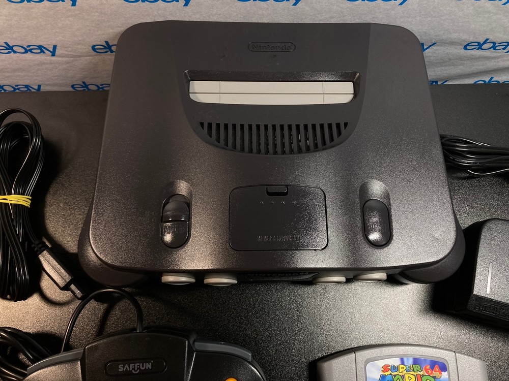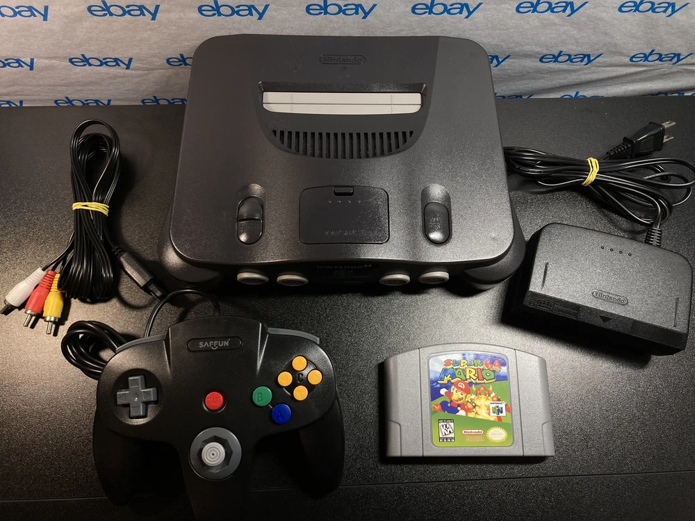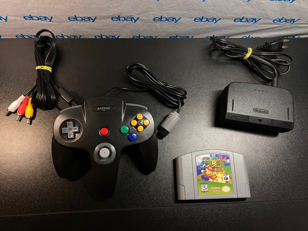 Nintendo 64 N64 Console with Super Mario 64, Black Controller, and Cables. Includes Power Cord, 3rd party av cables, and controller. The controller is a brand new Black 3rd party controller . This listing has 30 day free returns. Super Mario 64 is a new high quality copy. Shipped with USPS Priority Mail with same day handling before 11a.m. est on weekdays so you can play as soon as possible!!! Feel free to ask any questions you have! Every item will be packed carefully with bubble wrap like I would want to receive it!