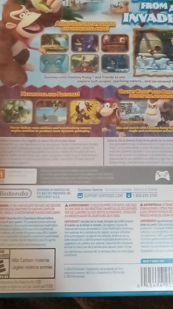 Release Year:2014Genre:Action & Adventure, PlatformerFeatures:Multiplayer, Manual Included, Single and multiplayer action, Explore six islands, New moves and featuresGame Name:Donkey Kong Country: Tropical FreezeRating:E-EveryoneRegion Code:NTSC-U/C (US/Canada)Video Game Series:Donkey Kong Country SeriesPublisher:NintendoPlatform:Nintendo Wii U