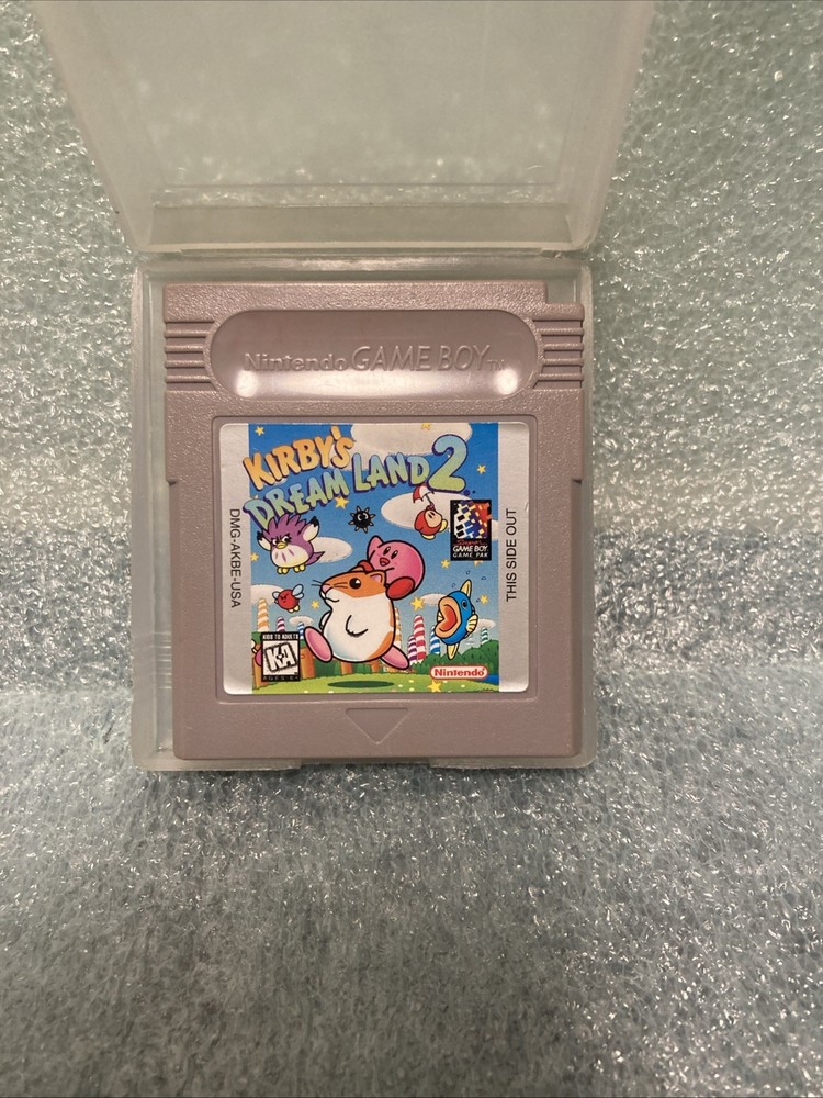 The product is an authentic Nintendo Game Boy cartridge for Kirby's Dream Land 1 & 2, released in 1992. These games are part of the Kirby franchise and fall under the action & adventure genre. The cartridges are in NTSC-U/C (US/Canada) region code and come with a manual included. Although they do not save progress, the games are fully functional and provide hours of nostalgic gameplay for fans of the classic Game Boy platform. ***AUTHENTIC*** No boxes / no manuals / *cartridges only* Some signs of previous use on cartridges. Mainly some faded writing both 2 and a small cosmetic nick at the top portion of dream land 1 ( SEE PICS ) Both games have been tested and are working. Battery needs to be replaced in order to save progress both otherwise function as intended! -INCLUDES 2 HARD NINTENDO CASES - SHIPS FAST WORLDWIDE - Please check out our other listings for similar products like this !
