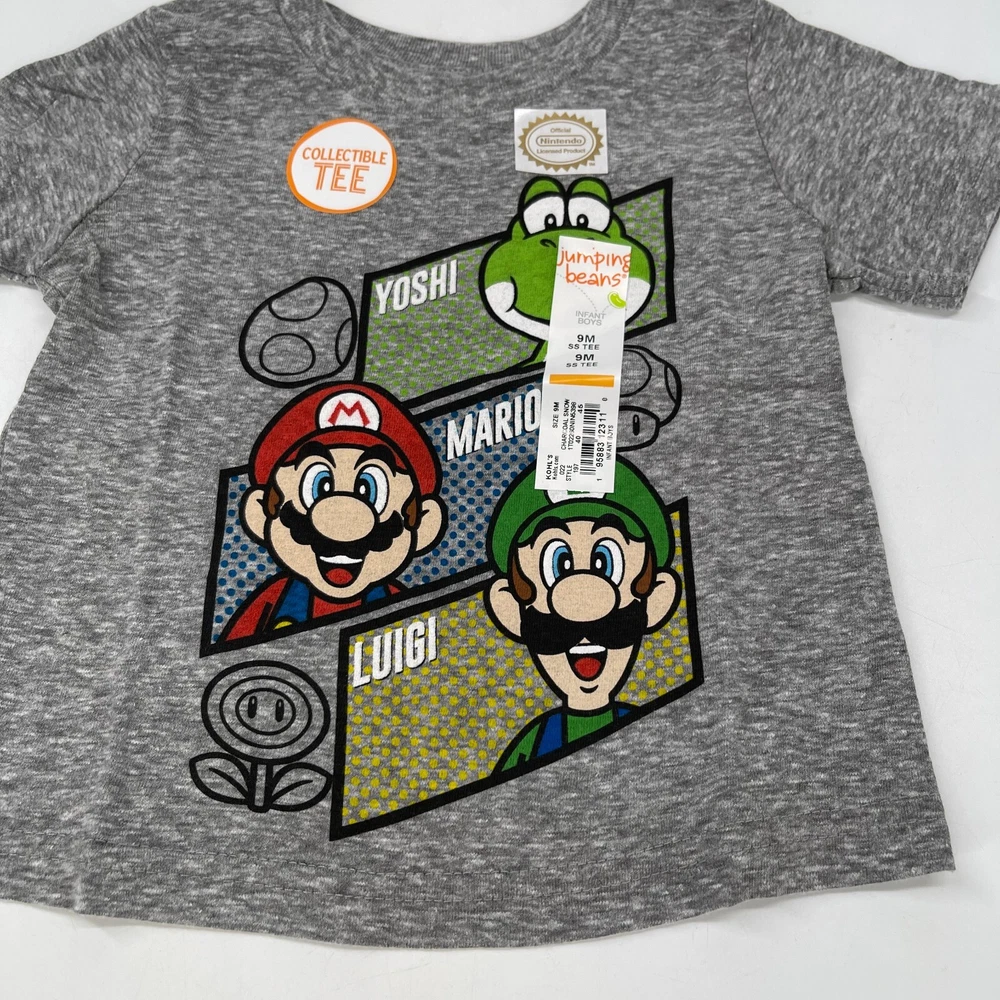 Nintendo Mario Luigi Yoshi Grey Graphic T Shirt Infant Boys Size 9M 9 Months NEW