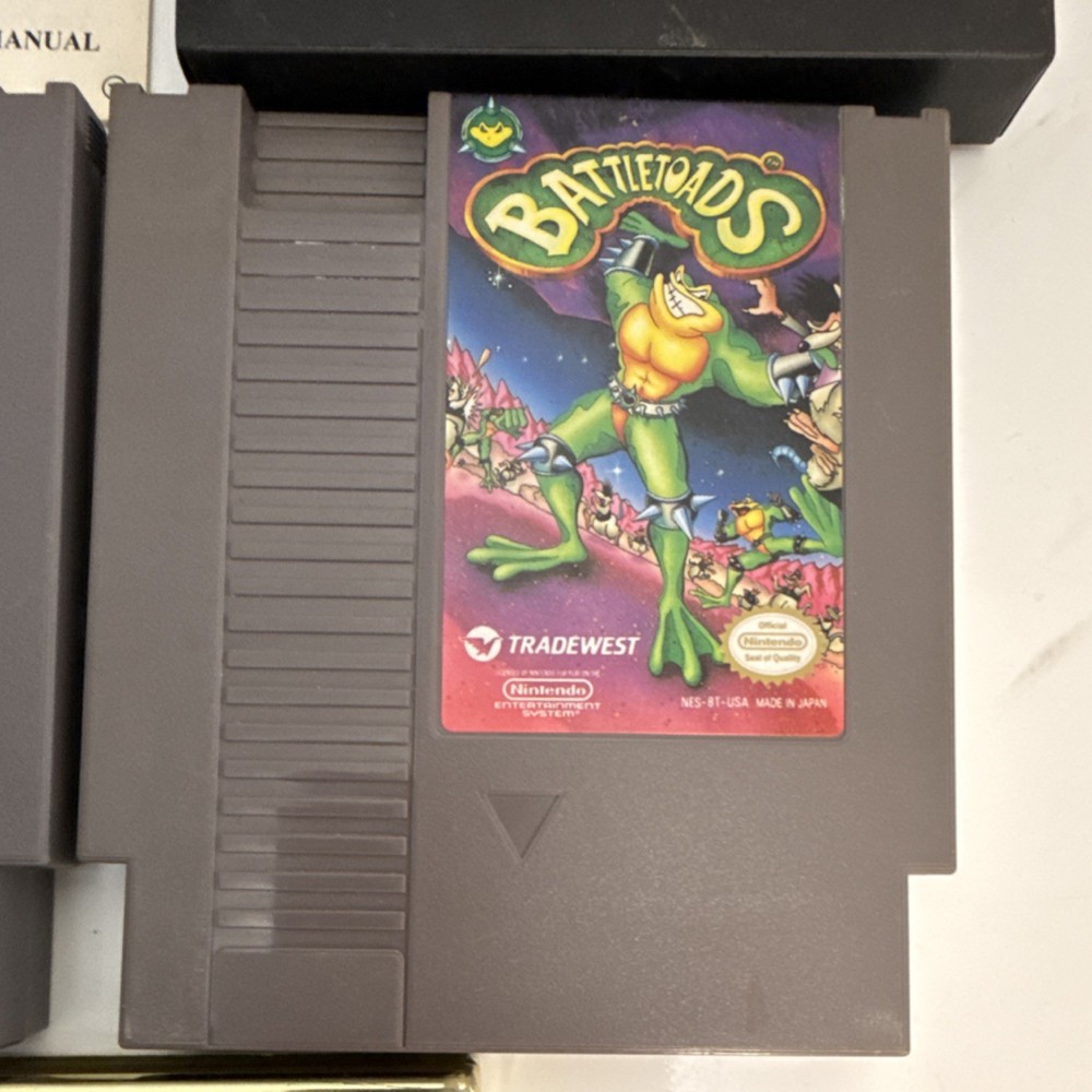 This Nintendo NES game lot includes Yo! Noid by Capcom and Battletoads by Tradewest. Both games were released in 1985 and come with manuals. Yo! Noid is a platformer game that follows the adventures of a secret agent navigating through various levels. Battletoads is a classic platformer game with a unique gameplay experience where players control the cute and mischievous Battletoads as they battle through various levels. This lot is a must-have for collectors and gamers looking to add some retro titles to their collection.