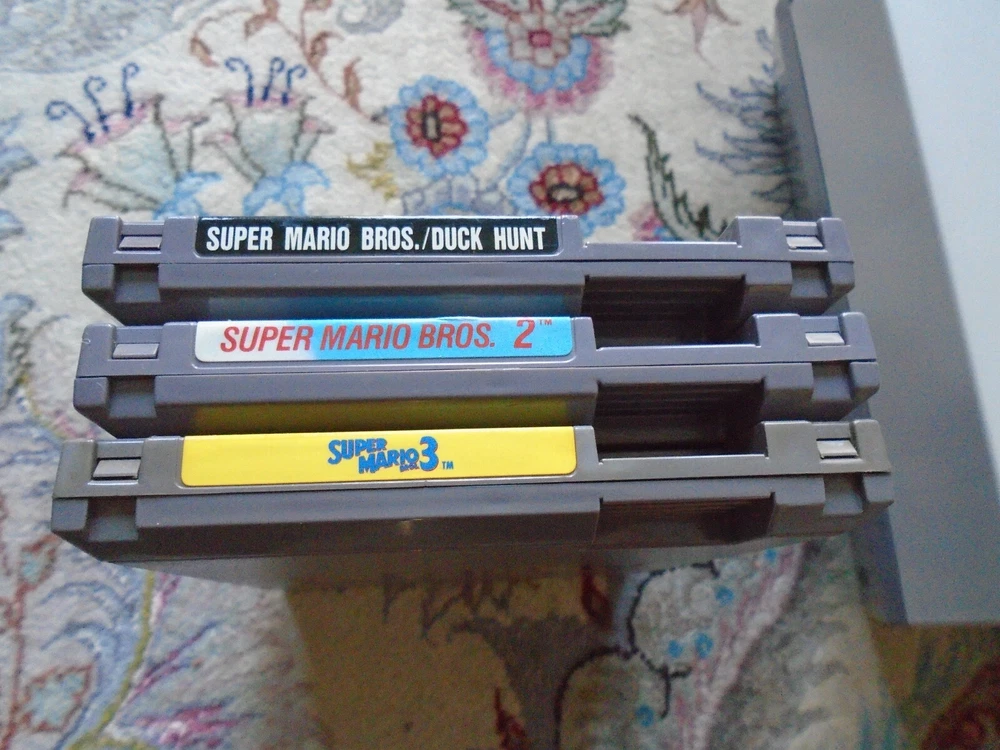 Video game bundle includes: Nintendo Entertainment System console (model NES-001 - original "Toaster" style) 2 OEM controllers OEM NES Advantage arcade joystick controller OEM Zapper light gun controller Necessary cables (OEM AC Adapter power cable and third-party composite audio/video cables) 3 games included: Super Mario Bros. / Duck Hunt Super Mario Bros. 2 Super Mario Bros. 3 Functionality and Cosmetic Condition: Everything is fully tested and working perfectly! The items are in good to excellent used condition, with some signs of wear and a couple small chips off the console's casing. The console has some yellowing occurring on the casing. PLEASE NOTE: The Zapper light gun controller worked, but only on a CRT (Cathode-Ray Tube) TV, and will not work on newer TVs (flat panel/rear-projection). The Zappers were only designed to work on CRT TVs. The items come from a smoke-free, pet-free home. The photos are of the actual items being sold. We only accept returns if the items were not described correctly. Thank you for viewing our auction and good luck bidding!