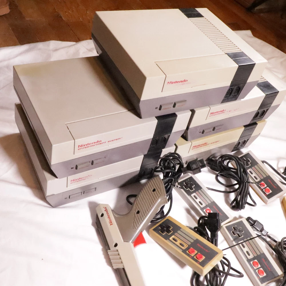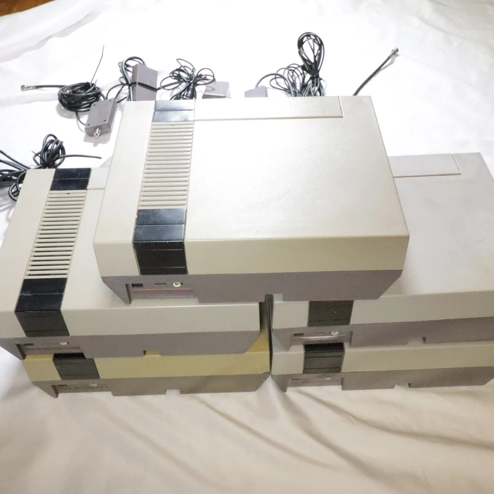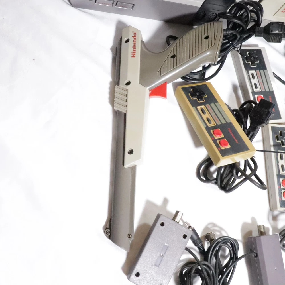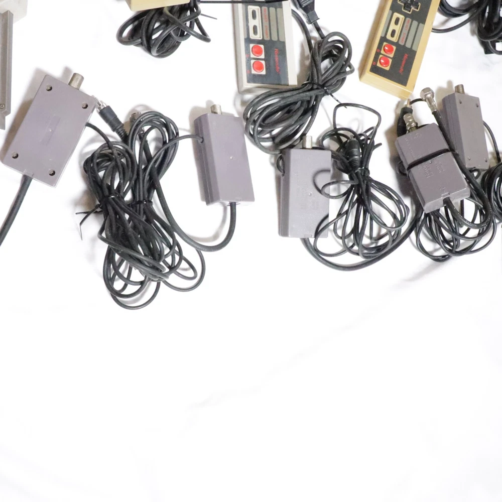 These are all untested and could work or could not. They are sold as is for testing and or repair , no power cords. 5 Original consoles 5 Original Controllers 5 Original RF Switches 1 Original Zapper Gun